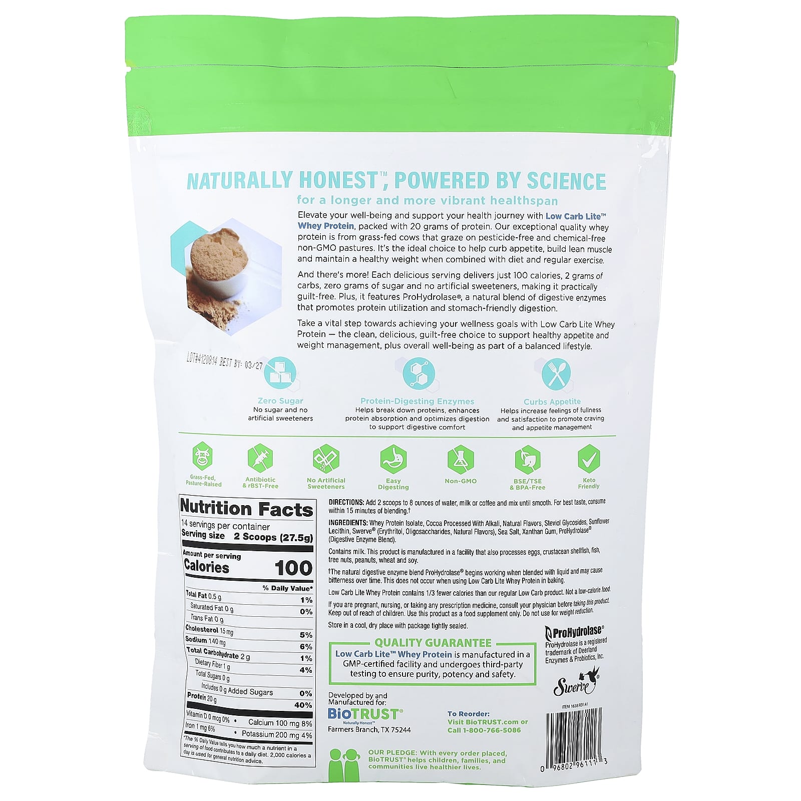 Сывороточный протеин Low Carb Lite™, содержащий 20 грамм протеина, улучшите самочувствие и поддержите здоровье. Наш сывороточный протеин исключительного качества получен от коров травяного откорма, которые пасутся на пастбищах, не содержащих пестицидов и химикатов и ГМО. Это идеальный выбор для обуздания аппетита, наращивания мышечной массы и поддержания здорового веса в сочетании с диетой и регулярными физическими упражнениями.