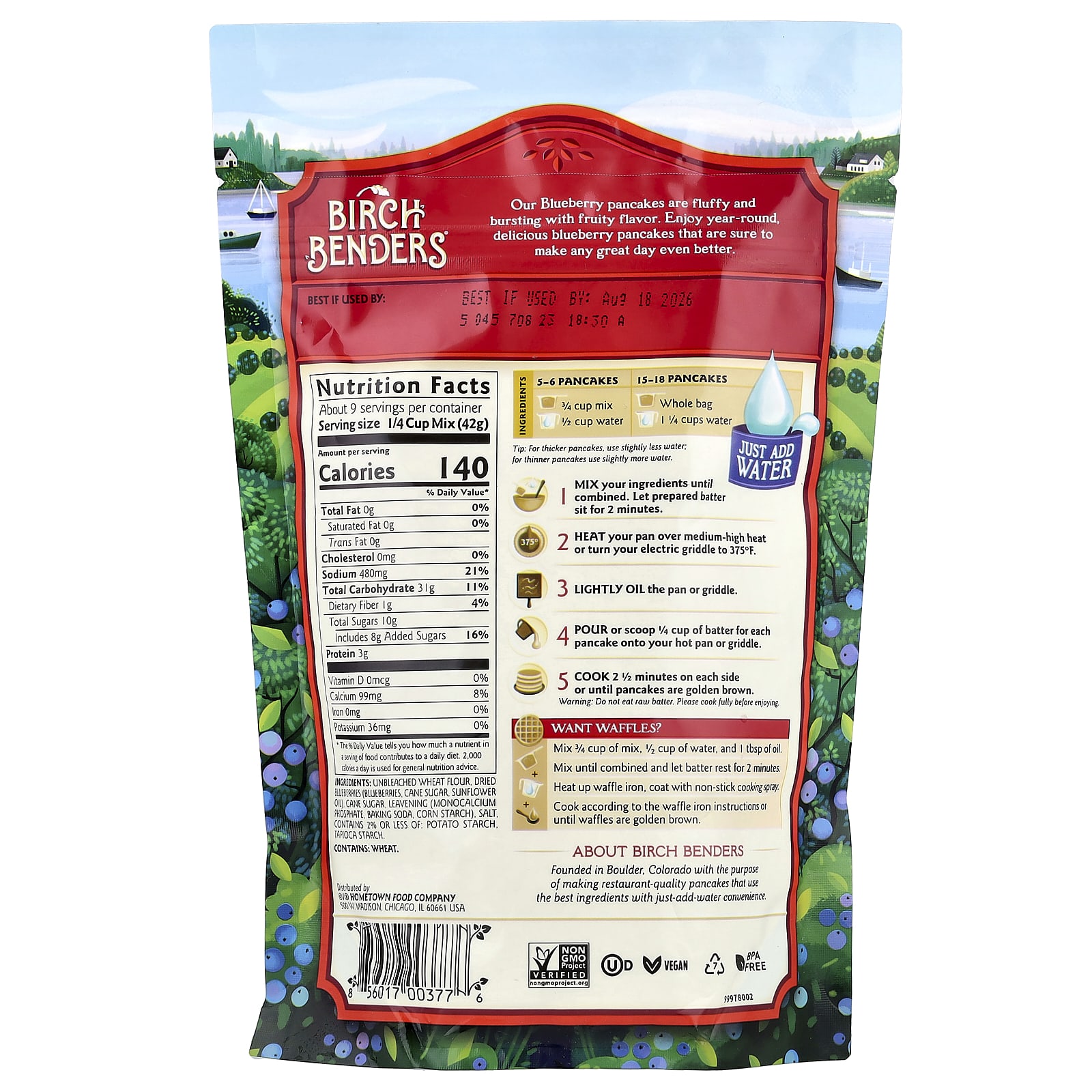 Неотбеленная пшеничная мука, сушеная голубика (голубика, тростниковый сахар, подсолнечное масло), тростниковый сахар, разрыхлитель (монокальцийфосфат, пищевая сода, кукурузный крахмал), соль, содержит не более 2% следующих ингредиентов: картофельный крахмал, тапиоковый крахмал.