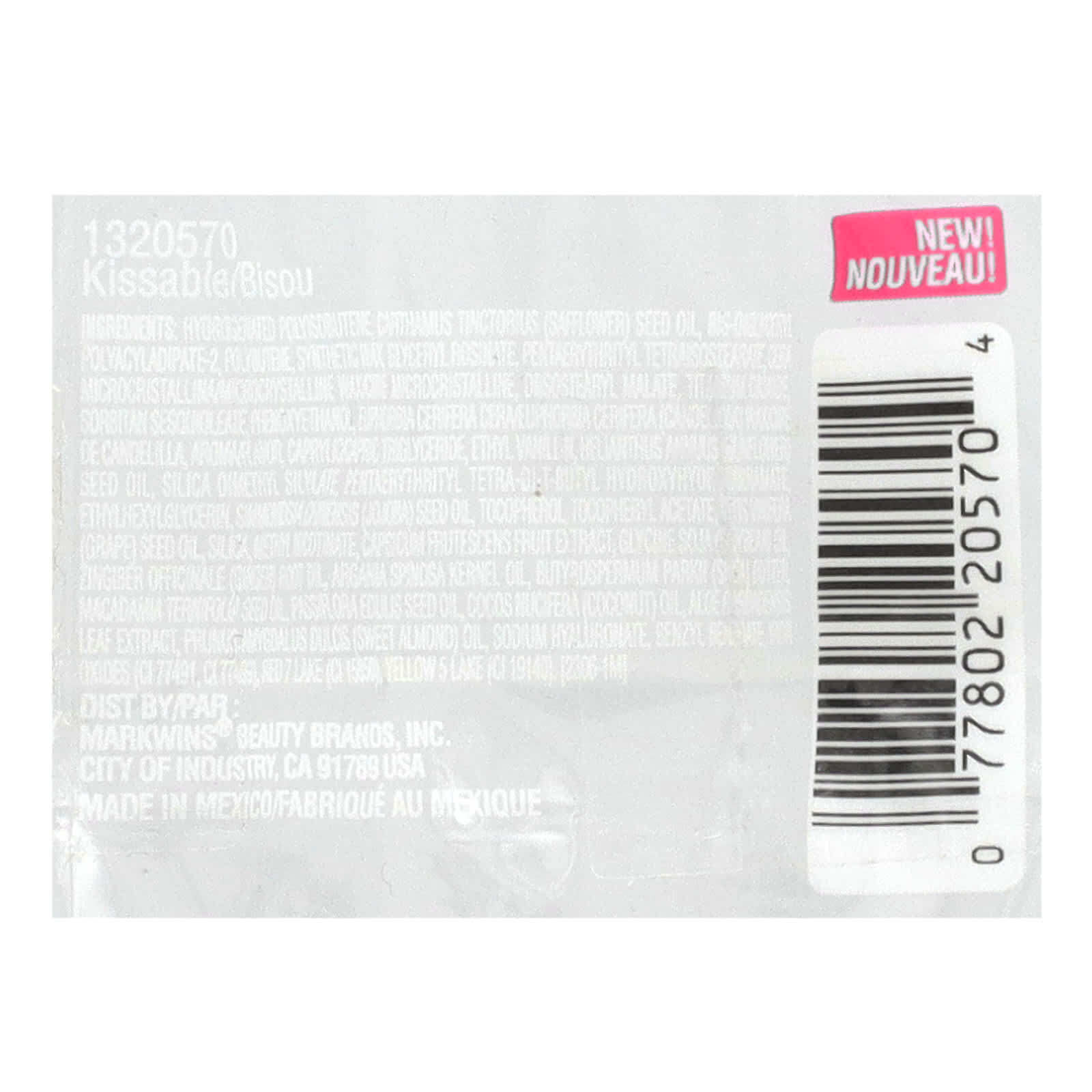 Гидрогенизированный полиизобутен, масло семян сафлора (Carthamus tinctorius), бис-оглицерил полиациладипат-2, полибутен, синтетический воск, глицерил розинат, пентаэритритил тетраизостеарат, микрокристаллический воск Cera микрокристаллический/микрокристаллический, диизостеарил малат, диоксид титана, сорбитана сесквиолеат, феноксиэтанол, канделильский воск (Euphorbia cerifera)/канделильский воск (Euphorbia cerifera), ароматизатор, каприл (каприновый триглицерид, этилванилин, масло семян подсолнечника (Helianthus annuss), диоксид кремния, диметил силилат, пентаэритритил тетра-ди-трет-бутил гидроксигидроциннамат, этилгексилглицерин, масло семян жожоба (Simmondsia chinensis), токоферол, токоферилацетат, масло из виноградных косточек (Vitis vinifera), диоксид кремния, метил никотинат, экстракт перца (Сapsicum frutescens), соевое масло (Glycine soja), масло корня имбиря (Zingiber officinale), аргановое масло (Argania spinosa), масло ши (Butyrospermum parkii), масло макадамии (Macadamia ternifolia), масло из семян пассифлоры (Passiflower edulis), кокосовое масло (Cocus nucifera), экстракт листьев алоэ вера (Aloe barbadensis), масло сладкого миндаля (Prunus amygdalus dulcis), гиалуронат натрия, бензилбензоат, оксиды железа (CI 77491, CI 77499), краситель красный 7 лак (CI 15850), краситель желтый 5 лак (CI 19140)