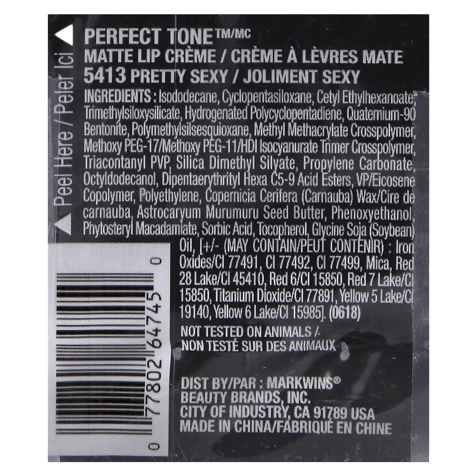 Может содержать Оксиды железа/CI 77491, CI 77492, CI 77499, слюда, краситель красный 28 лак (CI 45410), краситель красный 6 (CI 15850), краситель красный 7 лак (CI 15850), диоксид титана (CI 77891), краситель желтый 5 лак (CI 19140), краситель желтый 6 лак/CI 15985].