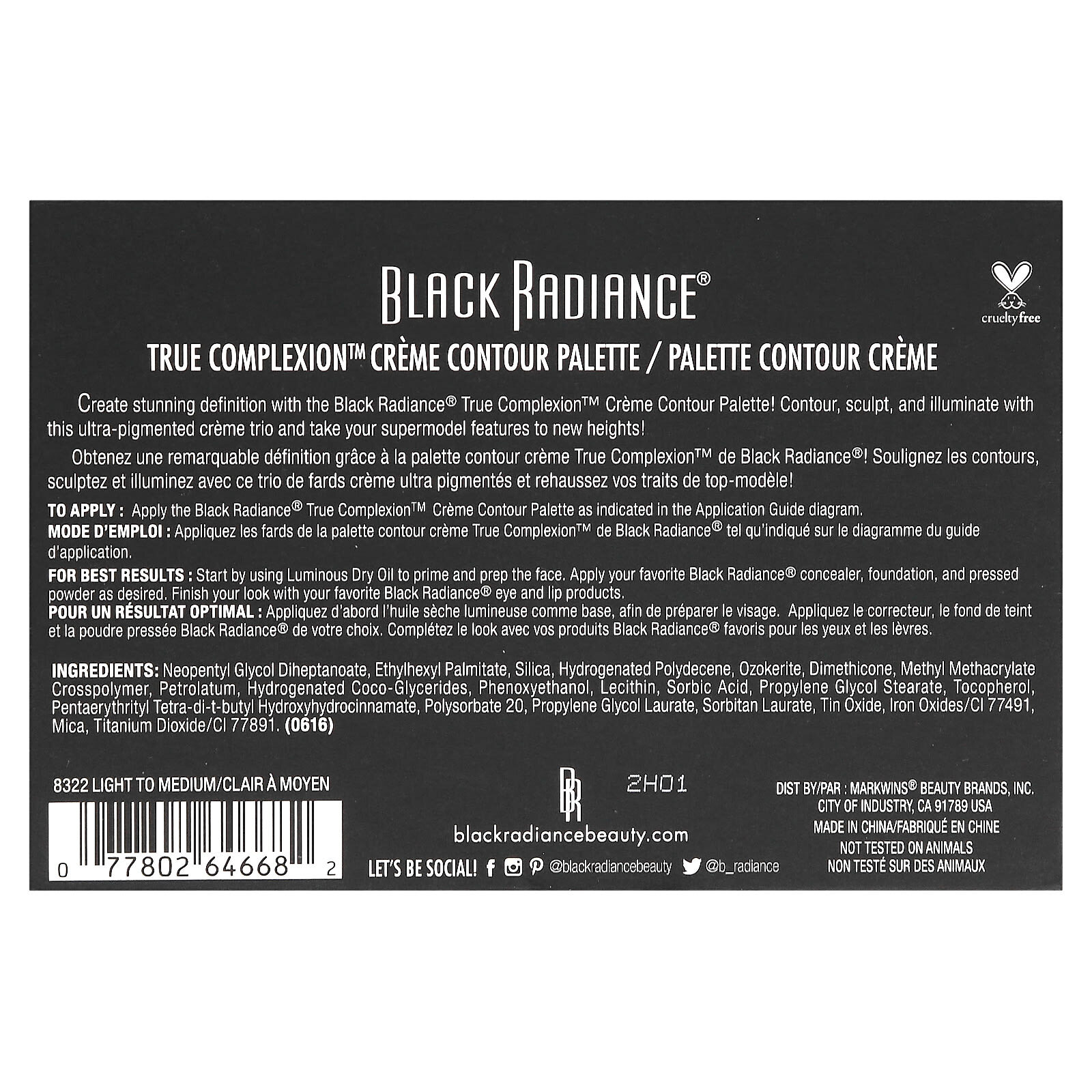 Нанесите палитру для контурирования кожи Black Radiance® True Complexion™, как показано на инструкции по нанесению.
