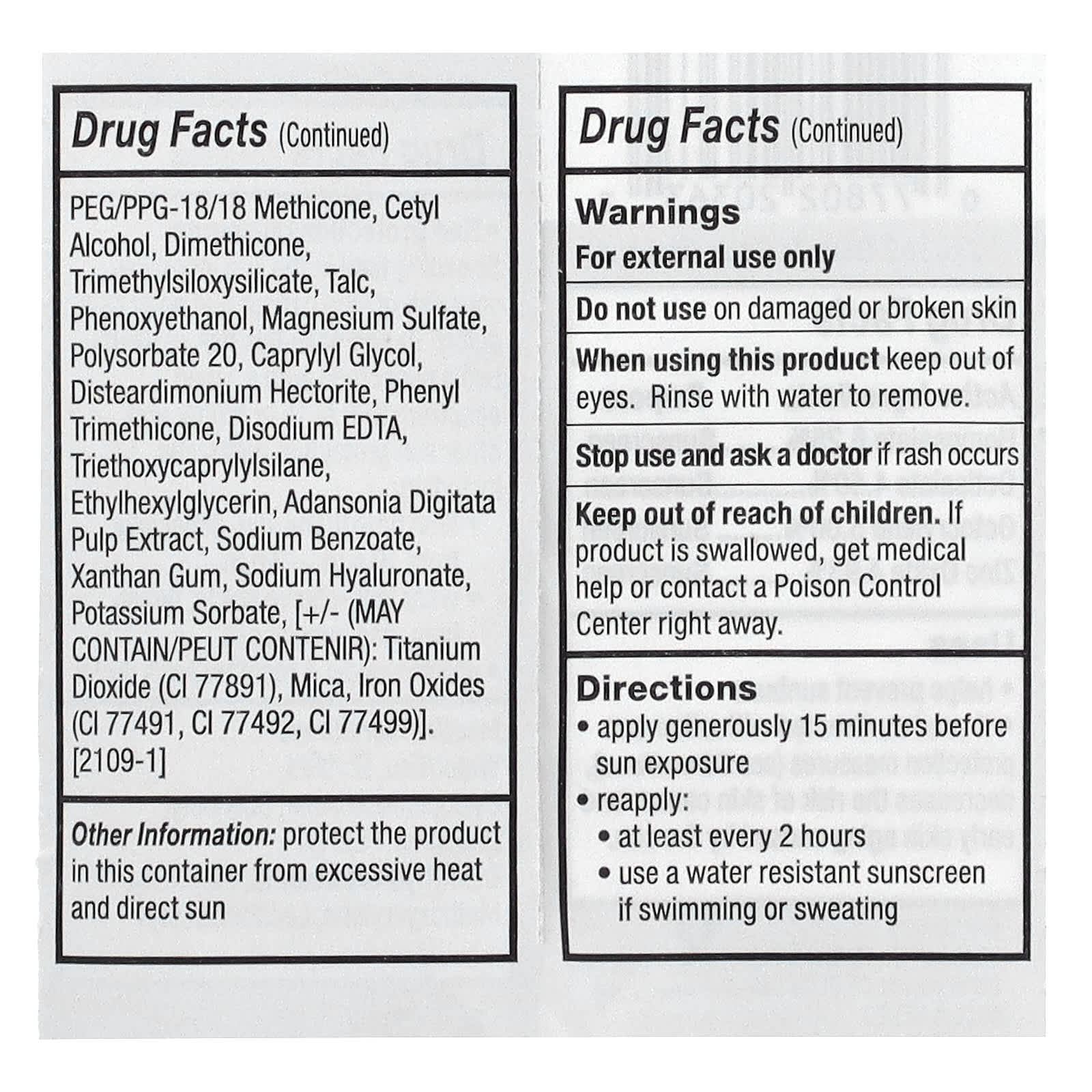| вода/eau, сорбитол, циклопентасилоксан, бутилоктил салицилат, ПЭГ-30 диполигидроксистеарат, этилгексил метоксикрилен, лецитин, лаурил ПЭГ/ППГ-18/18 метикон, цетиловый спирт, диметикон, триметилсилоксисиликат, тальк, феноксиэтанол, сульфат магния, полисорбат 20, каприлилгликоль , дистеардимония гекторит, фенилтриметикон, двунатриевая ЭДТК, триэтоксикаприлилсилан, этилгексилглицерин, экстракт целлюлозы баобаба (Adansonia digitata), бензоат натрия, ксантановая камедь, гиалуронат натрия, сорбат калия, [+/- (может содержать): диоксид титана (CI 77891), слюду, железо оксиды (CI 77491, CI 77492, CI 77499)]. | |