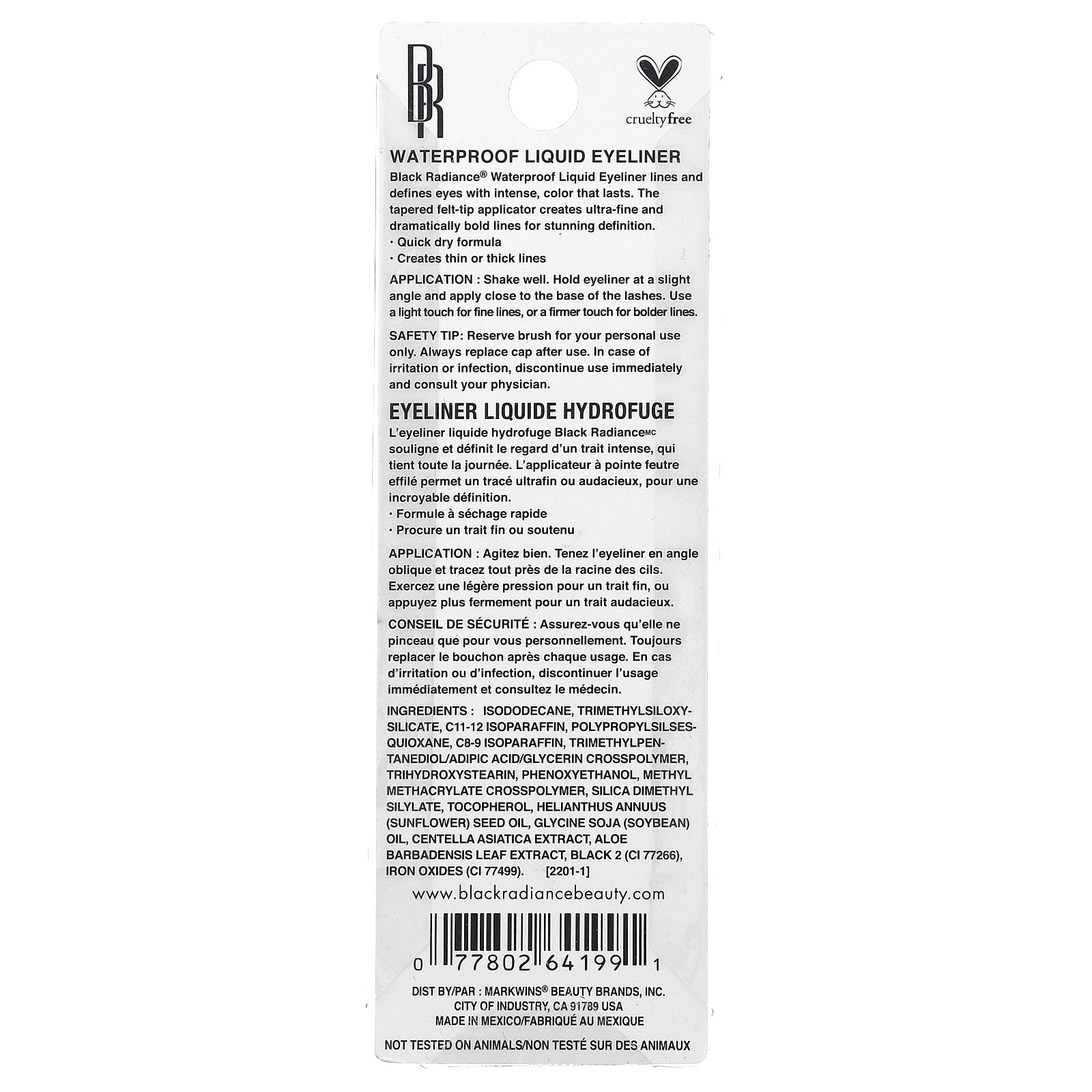 Водостойкая жидкая подводка для глаз Black Radiance® подчеркивает контуры глаз и придает им интенсивный цвет. Заостренный аппликатор войлочным кончиком создает сверхтонкие и эффектные линии, придавая им потрясающий вид.