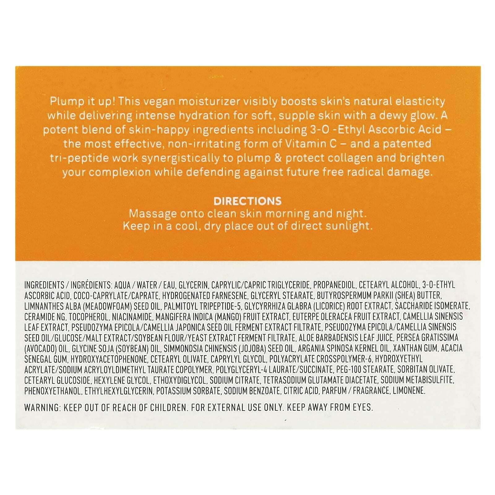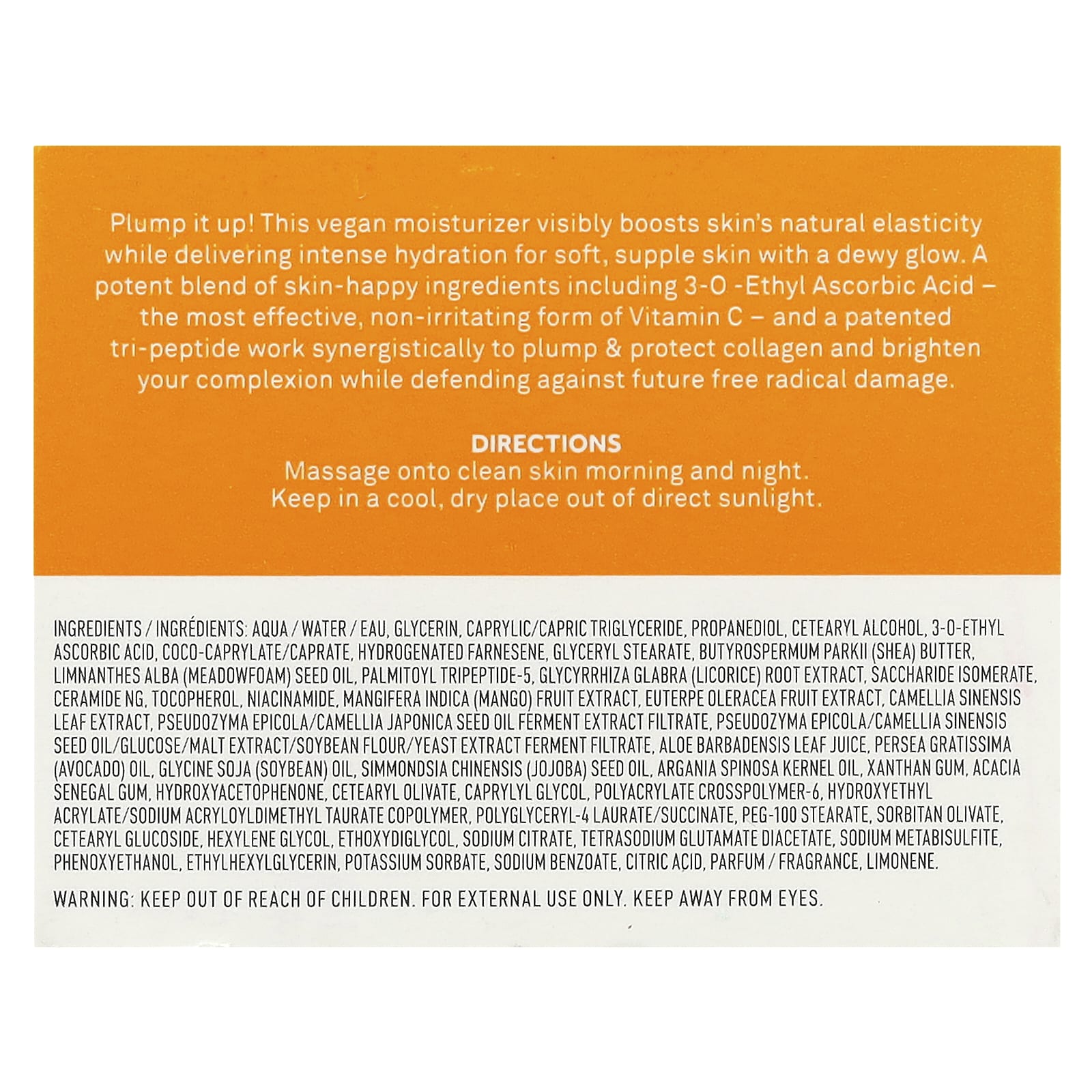 Пополните его! Этот веганский увлажняющий крем заметно повышает естественную эластичность кожи, обеспечивая интенсивное увлажнение, делая кожу мягкой, упругой и сияющей. Эффективная смесь полезных для кожи ингредиентов, включая 3-0-этил аскорбиновую кислоту - самую эффективную, не вызывающую раздражения форму витамина С - и запатентованный трипептид работают синергетически, чтобы увеличить объем и защитить коллаген, а также улучшить цвет лица, защищая от будущего повреждение свободными радикалами.