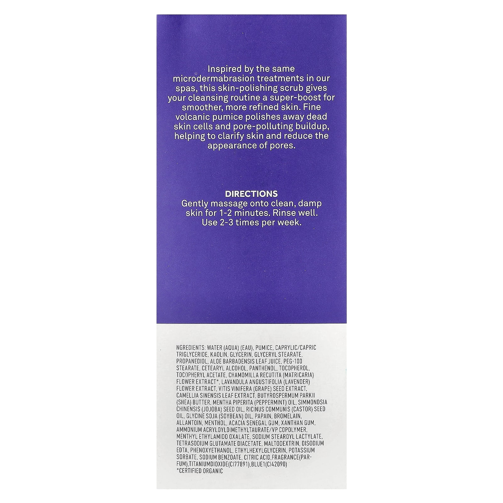 Этот скраб для полировки кожи, созданный на основе тех же процедур микродермабразии, сделает вашу кожу более гладкой и гладкой. Мелкая вулканическая пемза удаляет омертвевшие клетки кожи и загрязняющие поры, очищая кожу и сужая поры.