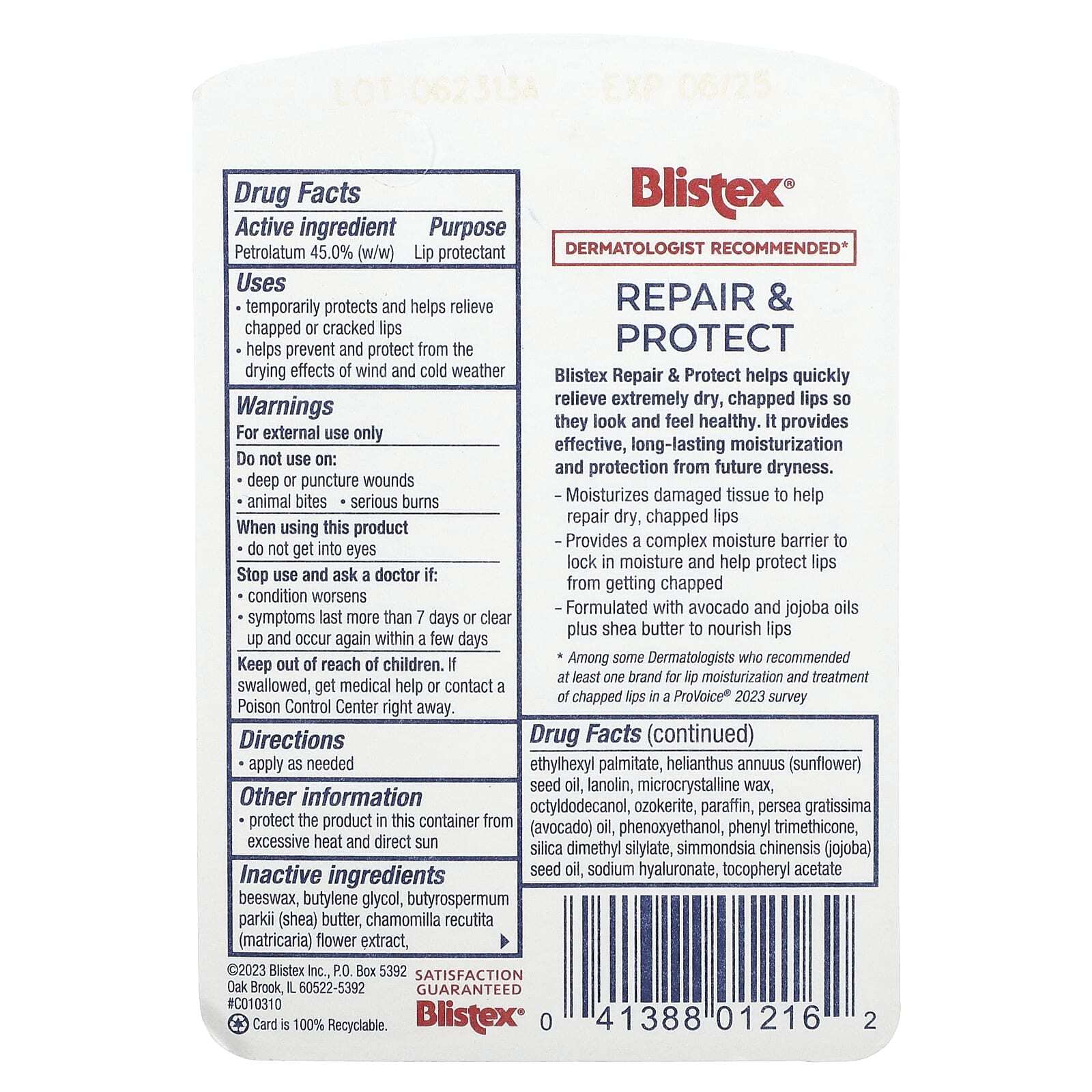 Blistex Repair & Protect помогает быстро избавиться от очень сухих и потрескавшихся губ, чтобы они выглядели и чувствовали себя здоровыми. Обеспечивает эффективное и длительное увлажнение и защиту от сухости в будущем.