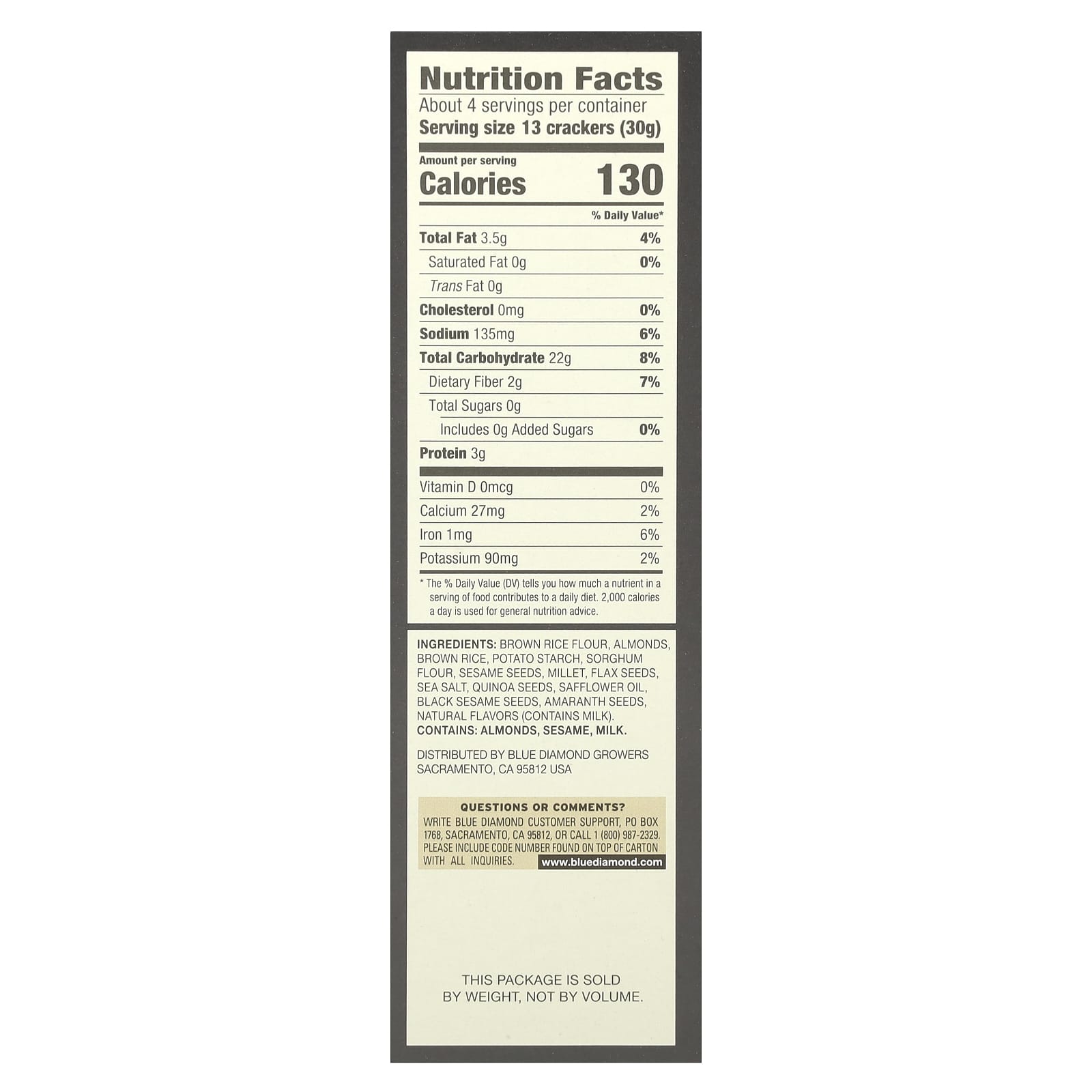 Мука из коричневого риса, миндаль, коричневый рис, картофельный крахмал, мука из сорго, кунжута, просо, семена льна, морская соль, семена киноа, сафлоровое масло, семена черного кунжута, семена амаранта, натуральные ароматизаторы (содержит молоко).