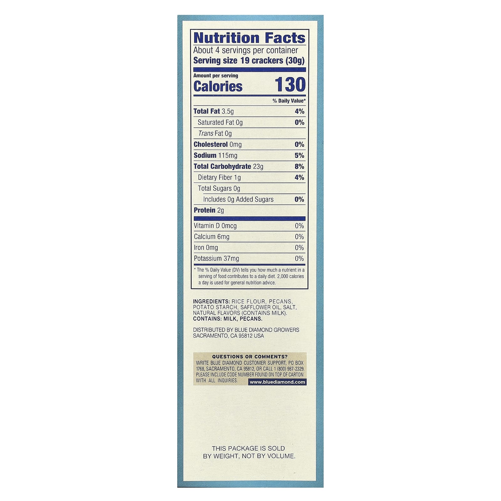 Мука из риса, мука из пекана, картофельный крахмал, экспансер прессованного масла сафлора, соль, натуральный ароматизатор пекана и натуральный ароматизатор масла (содержит молоко).