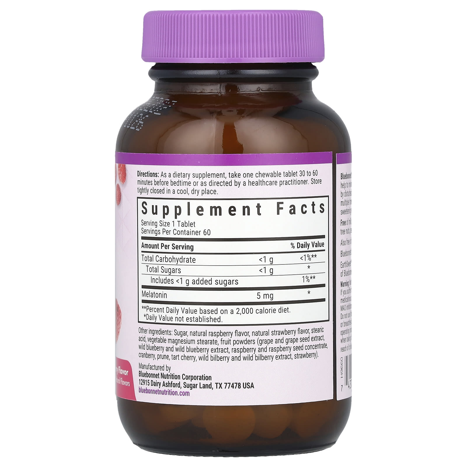 Bluebonnet Nutrition, Earth Sweet®, жевательные таблетки, мелатонин, малина, 5 мг, 60 жевательных таблеток