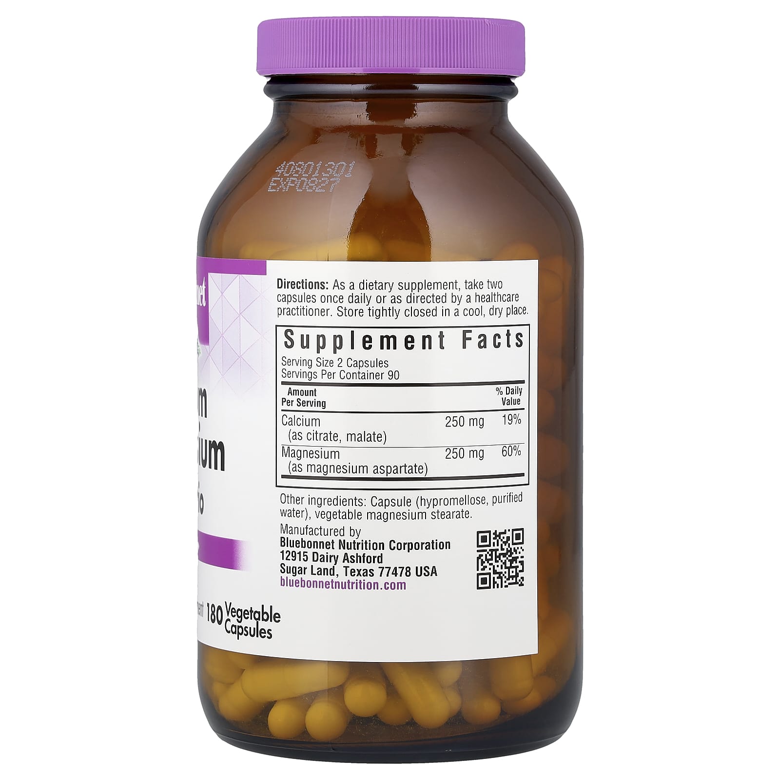 Растительные капсулы с кальцием и магнием 1:1 от Bluebonnet содержат кальций в соотношении 1:1 в хелатной форме цитрата кальция и малата, а также магний из полностью прореагировавшего аспартата магния для крепких и здоровых костей.