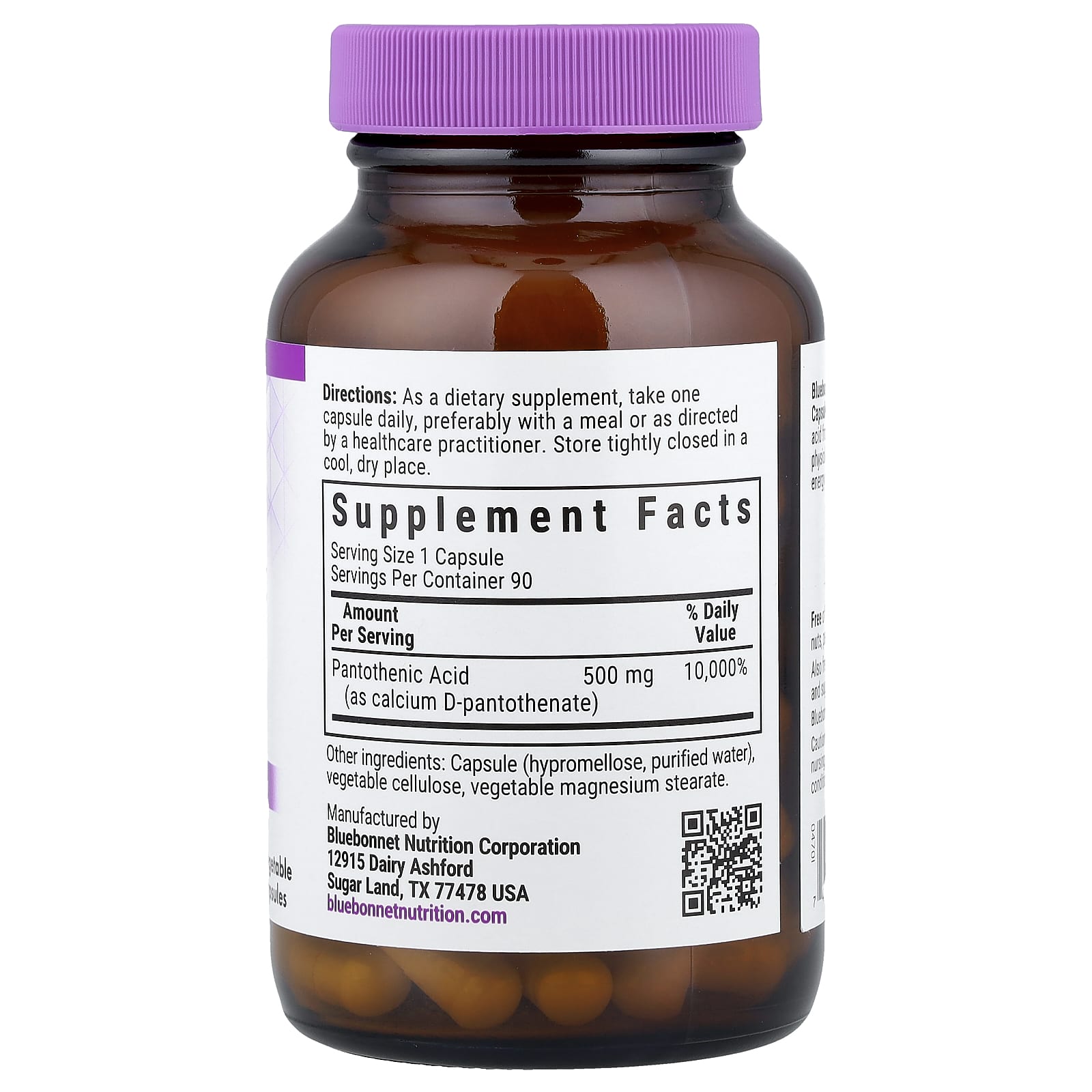 Пантотеновая кислота от Bluebonnet в растительных капсулах (500 мг) содержит пантотеновую кислоту из D-пантотената кальция для поддержки физиологических и метаболических функций, которые способствуют выработке клеточной энергии.