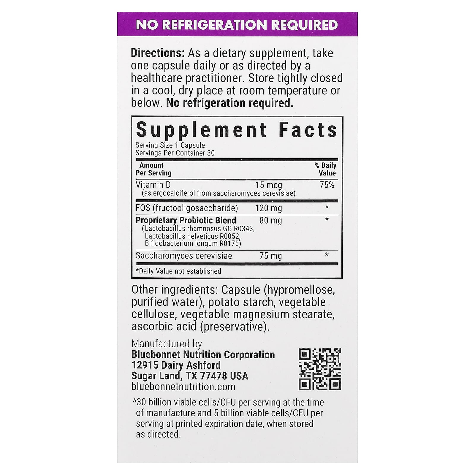 ^ 30 млрд жизнеспособных клеток/КОЕ в 1 порции на момент производства и 5 млрд жизнеспособных клеток/КОЕ в 1 порции до указанного срока годности при хранении в соответствии с рекомендациями.