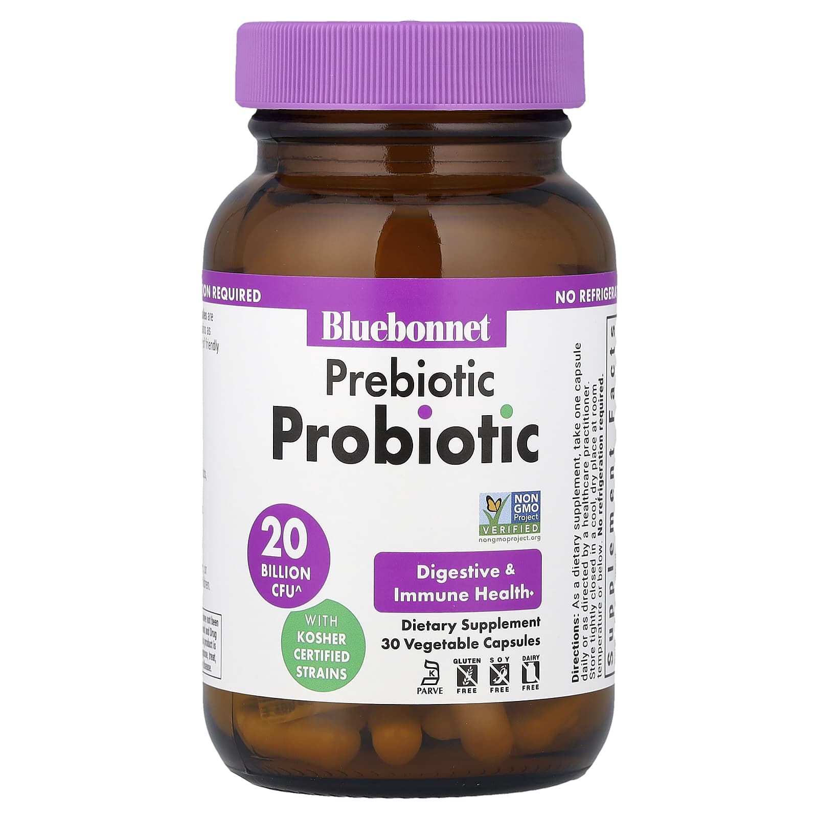 Пребиотики и пробиотики в растительных капсулах от Bluebonnet содержат проверенные ДНК, кошерные штаммы, а также пребиотическую клетчатку акации, которые способствуют росту полезных бактерий в кишечнике.