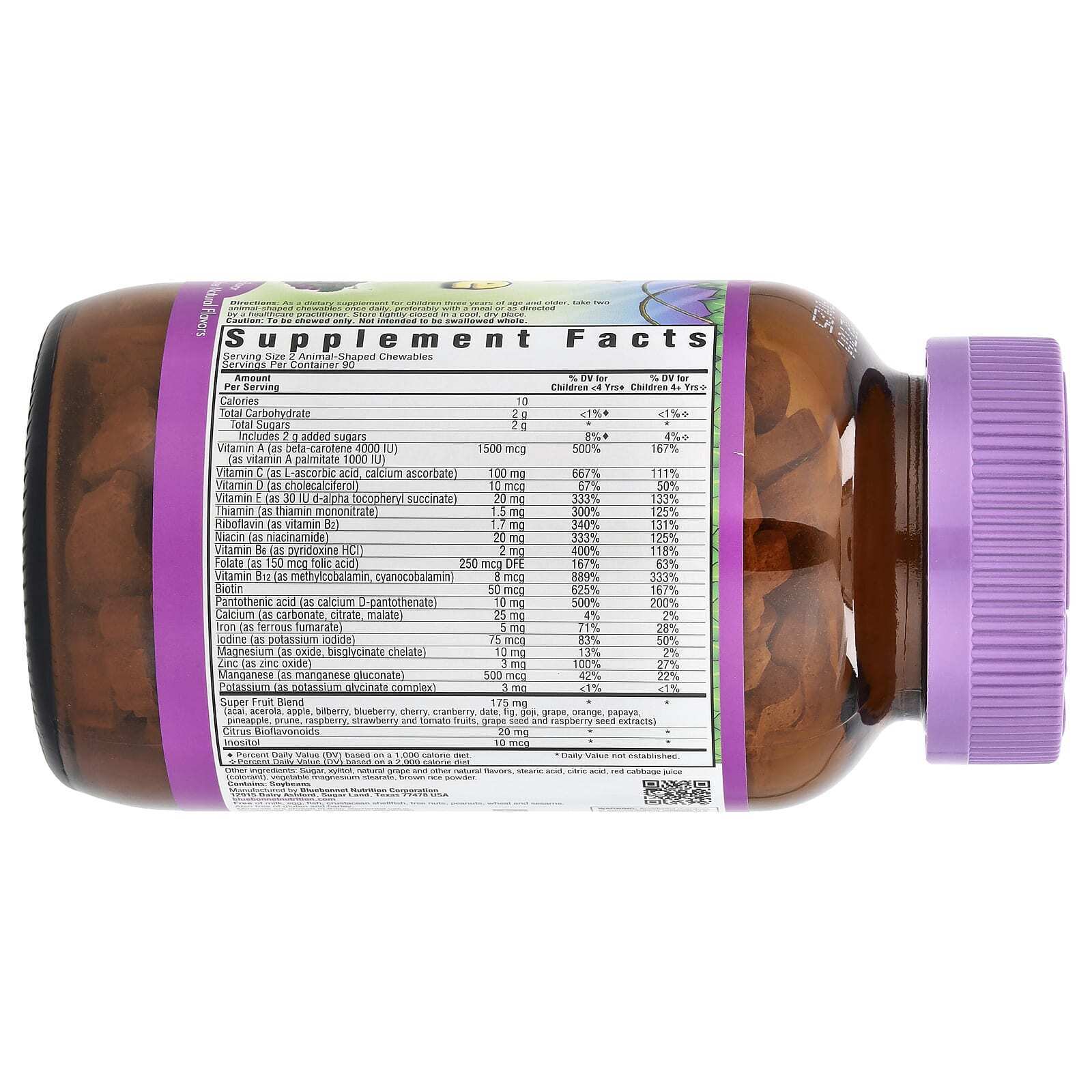 Жевательные таблетки из цельных продуктов Bluebonnet Rainforest Animalz из цельных продуктов с несколькими животными помогают восполнить пробел в питательных веществах, предоставляя комплексную смесь суперфруктов и овощей, богатых необходимыми витаминами и минералами, во вкусных, ароматных жевательных таблетках для поддержки их роста и развития.