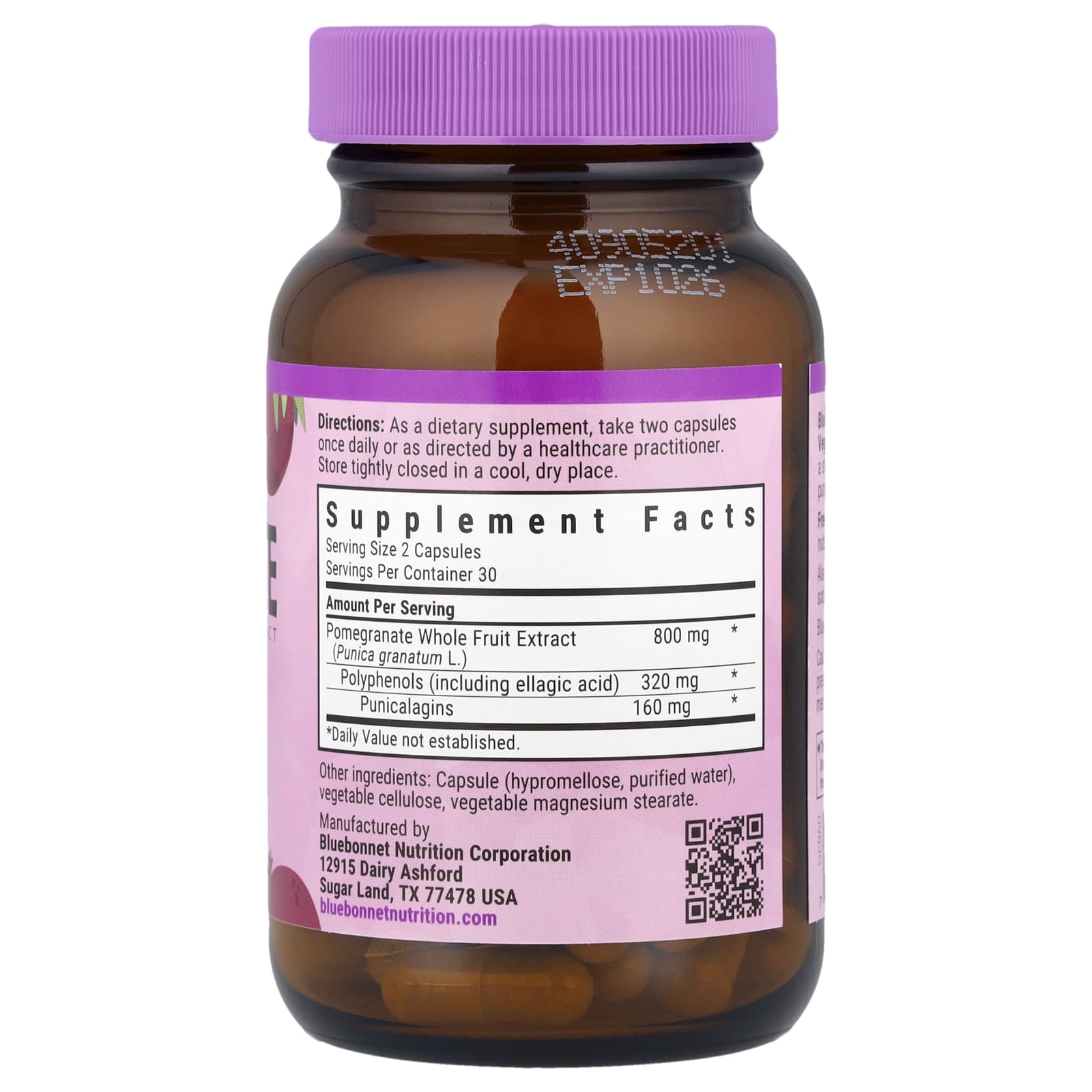 Растительные капсулы с экстрактом цельных плодов граната от Bluebonnet содержат стандартизированный экстракт полифенолов и пуникалагинов для поддержки здоровья клеток.