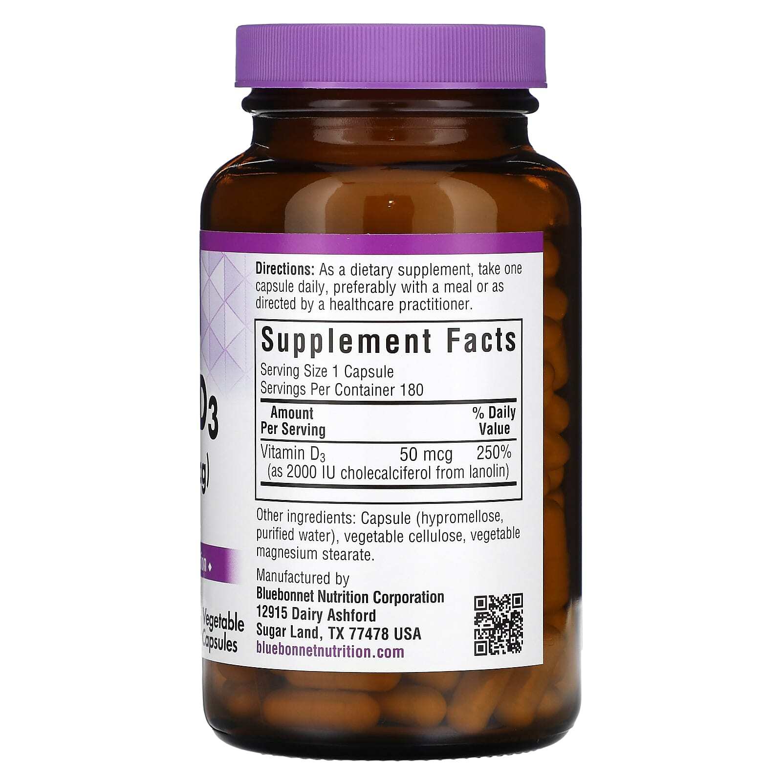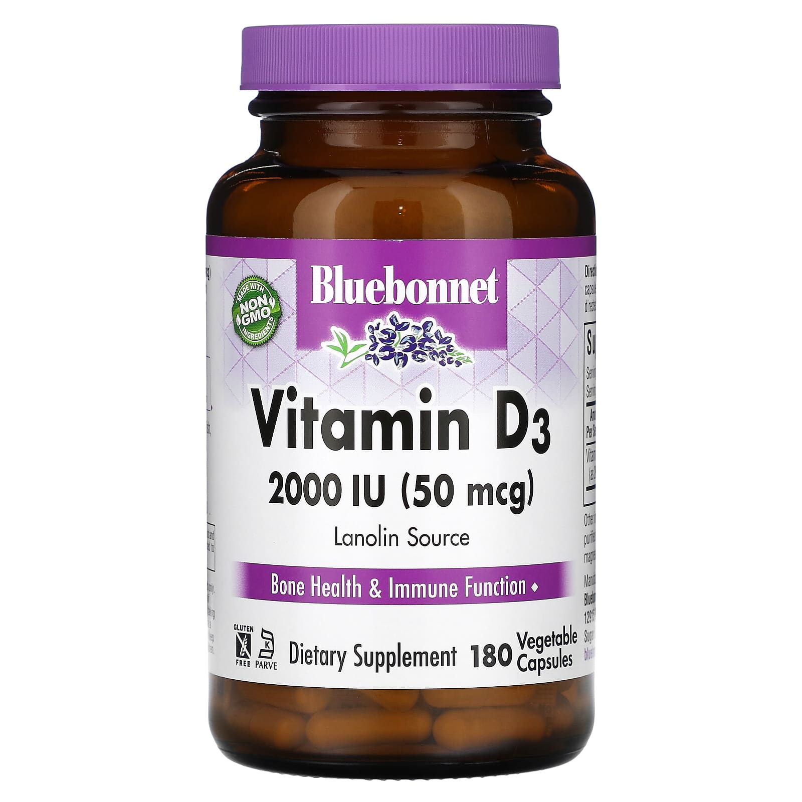 Капсулы с витамином D3 от Bluebonnet содержат 50 мкг (2000 МЕ) витамина D3 (холекальциферола) из ланолина, который поддерживает здоровье и прочность костей, а также укрепляет иммунитет.