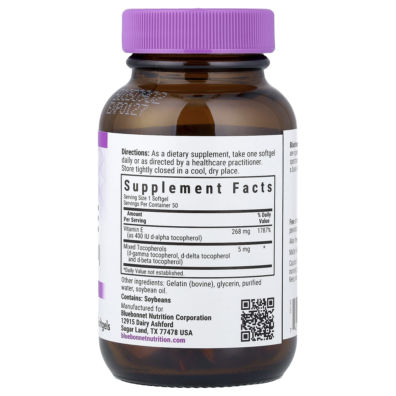 Bluebonnet Nutrition, витамин E, 268 мг (400 МЕ), 50 мягких таблеток
