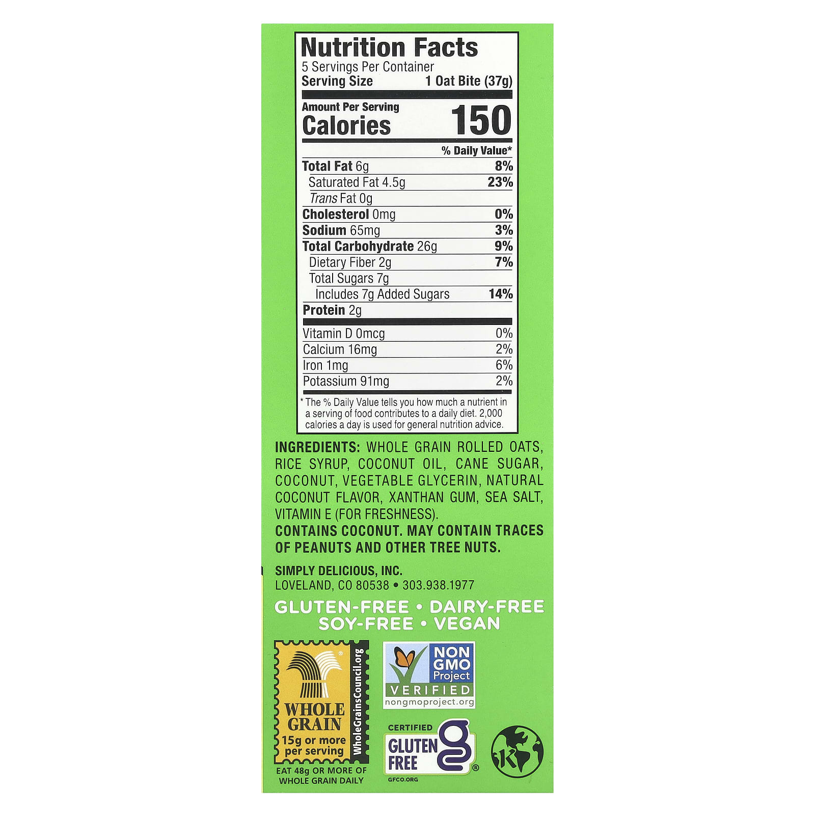 Цельнозерновой плющенный овес, рисовый сироп, кокосовое масло, тростниковый сахар, кокос, растительный глицерин, натуральный кокосовый ароматизатор, ксантановая камедь, морская соль, витамин Е (для свежести).