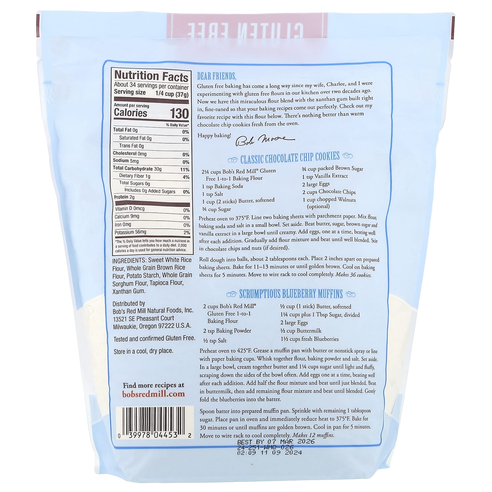 - 2 ¼ стакана безглютеновой муки для выпечки 1 к 1 Bob's Red Mill®
