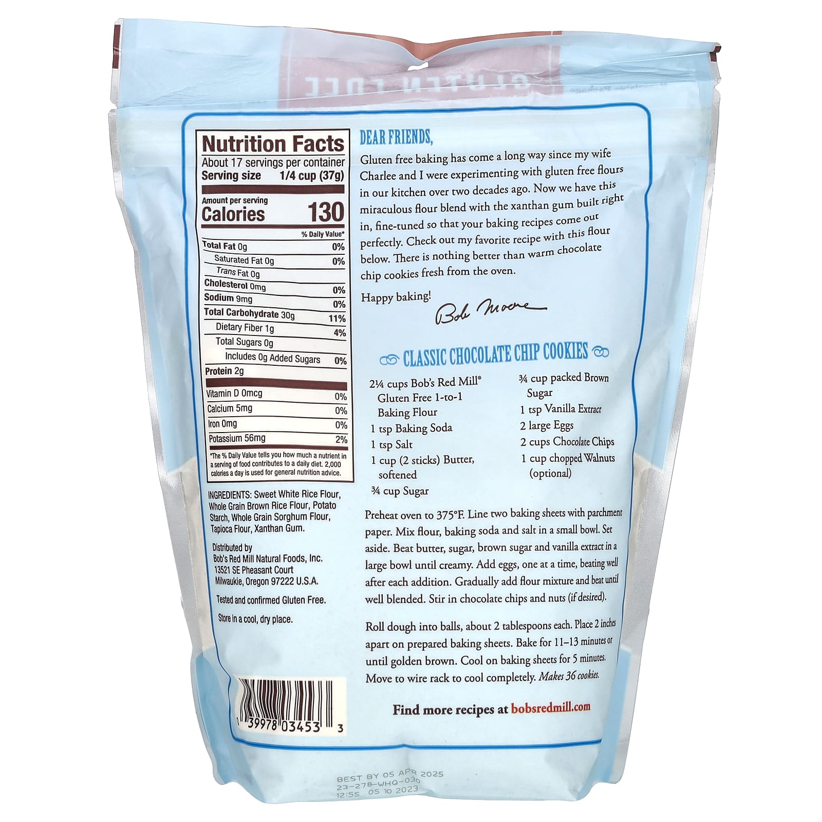 Мука из сладкого шлифованного риса, цельнозерновая мука из коричневого риса, картофельный крахмал, цельнозерновая мука из сорго, тапиоковая мука, ксантановая камедь.