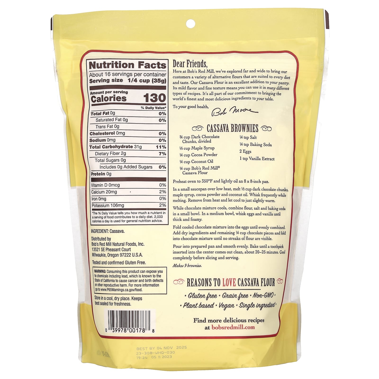 Компания Bob's Red Mill изучила все вдоль и поперек, чтобы предложить нашим клиентам множество альтернативных видов муки, которые подходят для любой диеты и вкуса. Наша мука кассавы — отличный вариант для пополнения ваших запасов. Мягкий вкус и мелкий помол позволяют использовать ее во многих рецептах. Мы делаем все, чтобы доставить на ваш стол самые лучшие и вкусные в мире продукты.