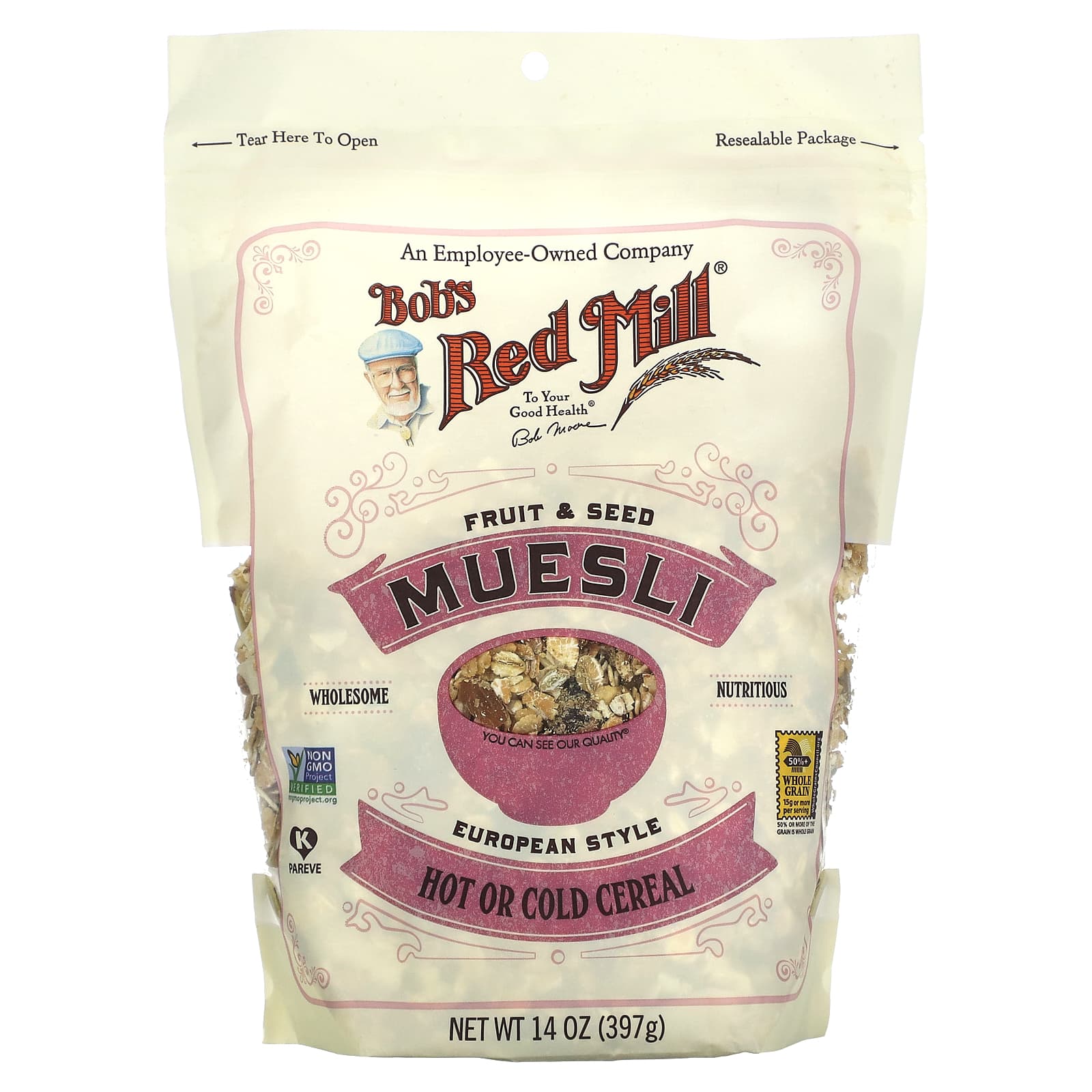 Stovetop: For hot cereal, bring 1 cup of water to a boil. Add 1/2 cup muesli, reduce heat to medium-low and simmer for about 7 minutes. Remove from heat, cover, and let stand for 2 minutes before serving. Makes 2 delicious servings