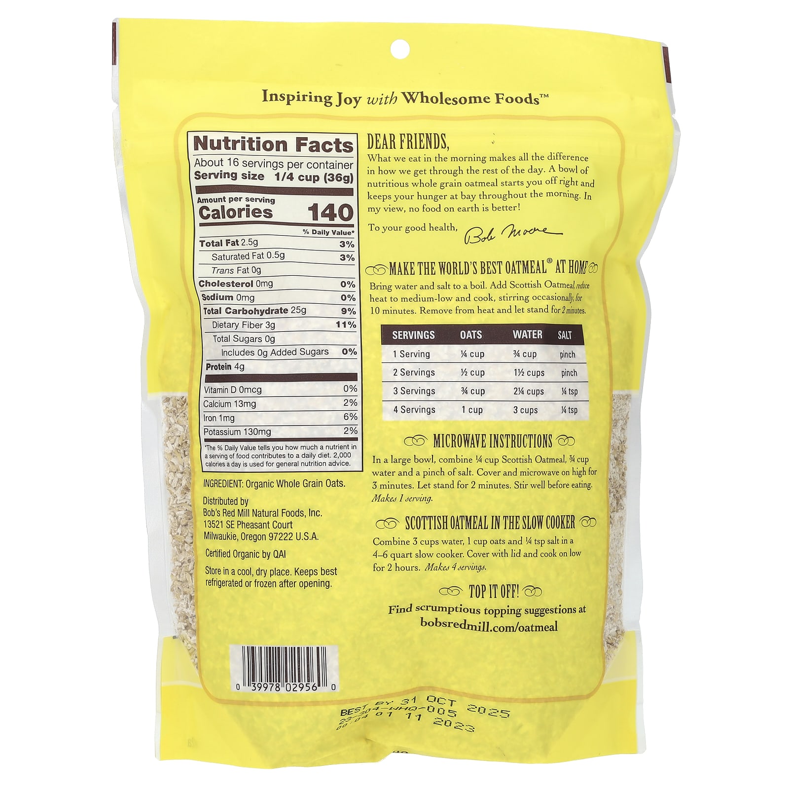 Овсянка возникла в Шотландии века назад и отличалась от современных овсяных хлопьев. Грубую муку получали путем медленного измельчения овсяной крупы между двумя большими жерновами. Много лет назад Боб был в Шотландии и изучал искусство мельницы по камню на старинной мельнице Preston, которая приводится в действие водой. Сегодня органическая шотландская овсянка Bob's Red Mill производится таким же старинным способом.