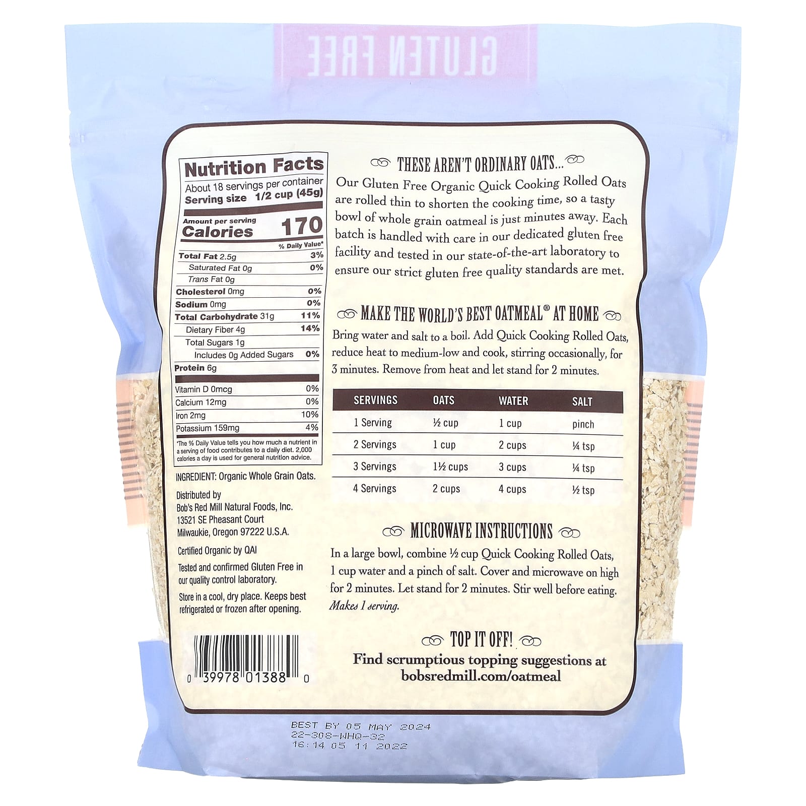 Наши органические овсяные хлопья быстрого приготовления без глютена тонко раскатываются, чтобы сократить время приготовления, поэтому вкусная миска цельнозерновой овсянки находится всего в нескольких минутах ходьбы. Каждая партия проходит бережную обработку на нашем специальном производстве продуктов без глютена и тестируется на отсутствие глютена в нашей современной лаборатории. Таким образом мы обеспечиваем соответствие нашим строгим стандартам качества и гарантированное отсутствие глютена.