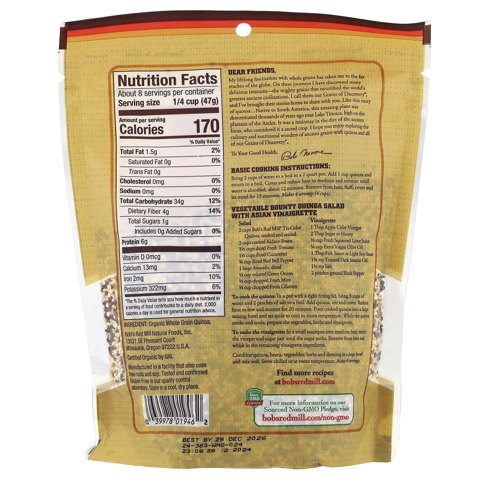Мое увлечение цельнозерновыми продуктами привело меня в самые отдаленные уголки земного шара. Во время этих путешествий я обнаружил много восхитительных сокровищ - могучие зерна, которые питали величайшие древние цивилизации мира. Я называю их «Grains of Discovery®» и делюсь с вами их историями. Как эта история с киноа ... Это удивительное растение родом из Южной Америки было одомашнено тысячи лет назад недалеко от озера Титикака, высоко на плато Анд. Древние инки питали ее своей священной культурой. Надеюсь, вам понравится изучать кулинарные и питательные чудеса древних злаков с киноа и всеми нашими Grains of Discovery®.