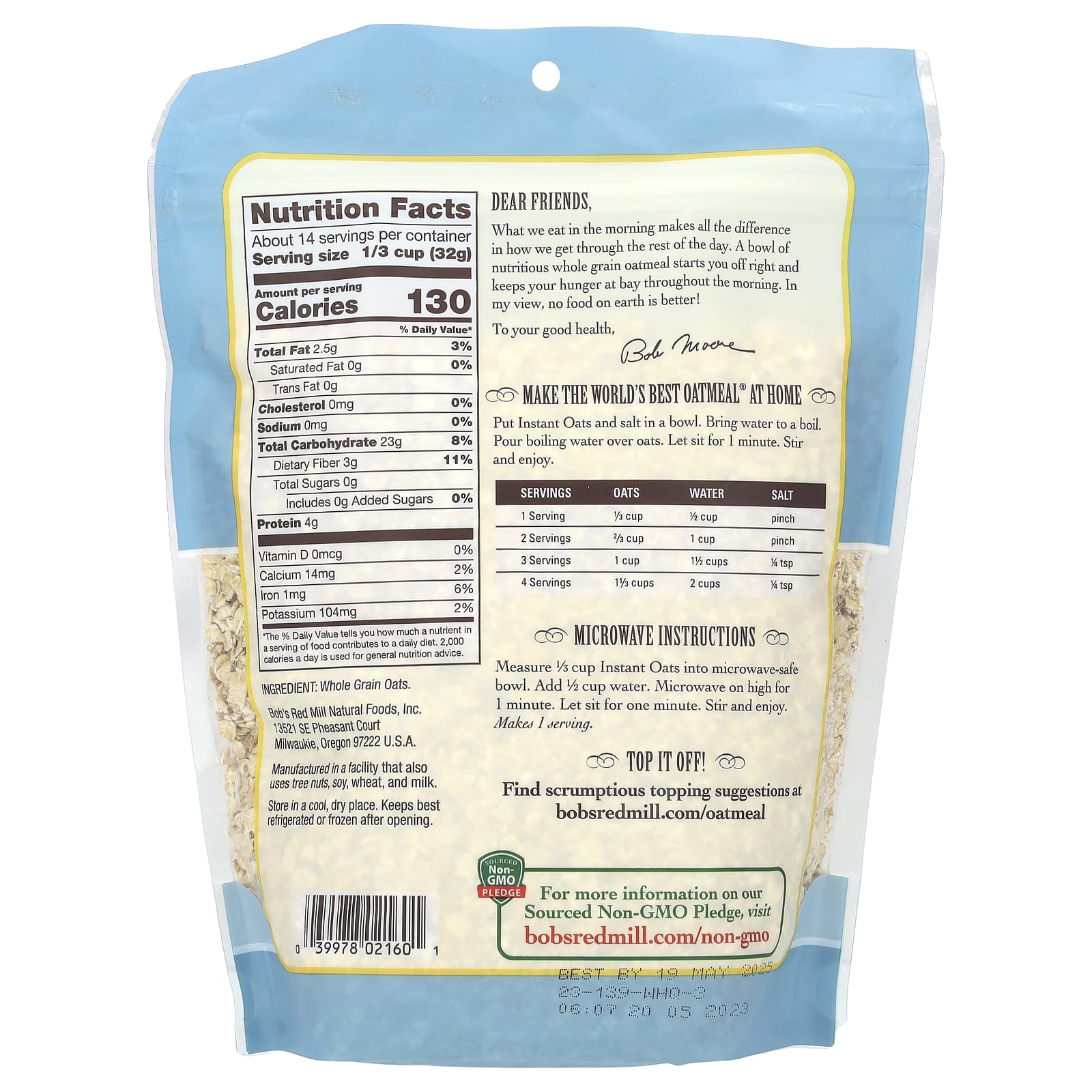 Отмерьте 1/3 стакана овсяных хлопьев быстрого приготовления в миске, которую можно использовать в микроволновой печи. Добавьте 1/2 стакана воды. Готовьте в микроволновой печи на высокой мощности в течение 1 минуты. Оставьте на одну минуту. Перемешайте и наслаждайтесь. Рассчитано на 1 порцию.