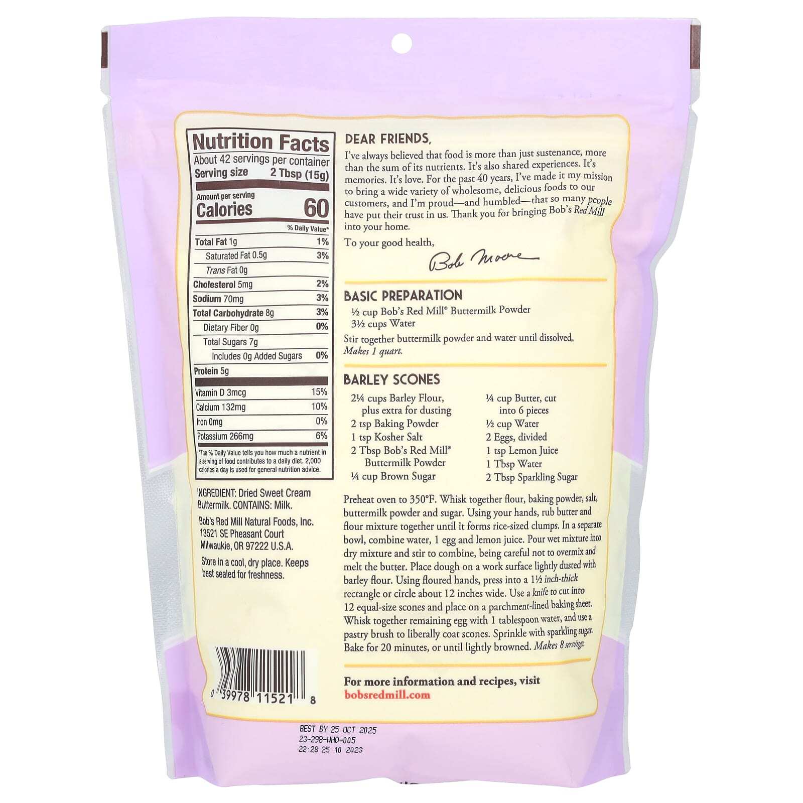 - ½ чашки пахты в порошке Bob's Red Mill®