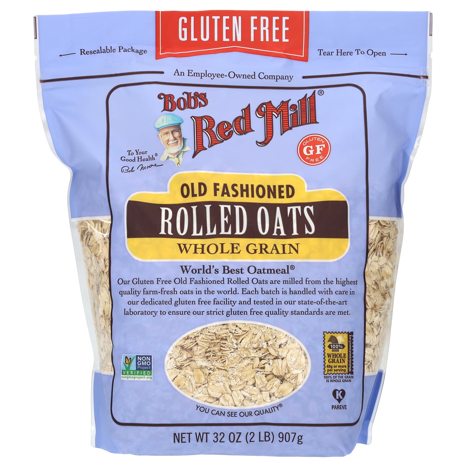 Bob's Red Mill, Традиционные овсяные хлопья, цельнозерновые, без глютена, 907 г (32 унции)