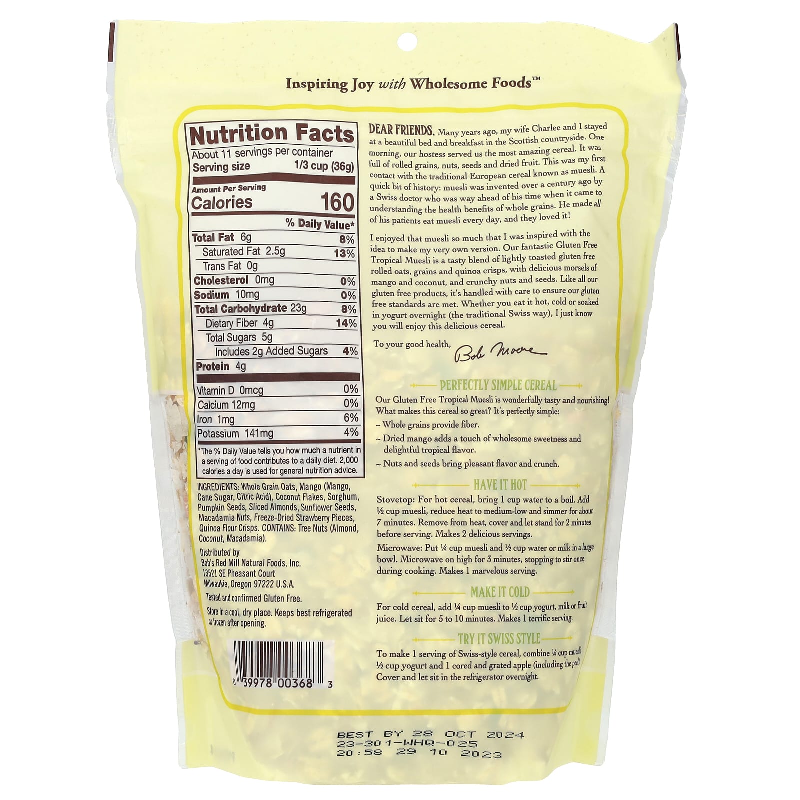 Мне так понравились эти мюсли, что у меня возникла идея сделать собственный продукт. Наши фантастические тропические мюсли без глютена — это вкусная смесь слегка обжаренных овсяных хлопьев без глютена, злаков и чипсов из киноа с аппетитными кусочками манго и кокоса, а также хрустящими орехами и семенами. Как и все наши продукты без глютена, этот продукт обрабатывается с заботой, чтобы обеспечить соответствие нашим стандартам. Ешьте ли вы их в горячем, холодном виде или замочите в йогурте на ночь (традиционный швейцарский способ), мы уверены, что вы оцените эти вкусные хлопья.