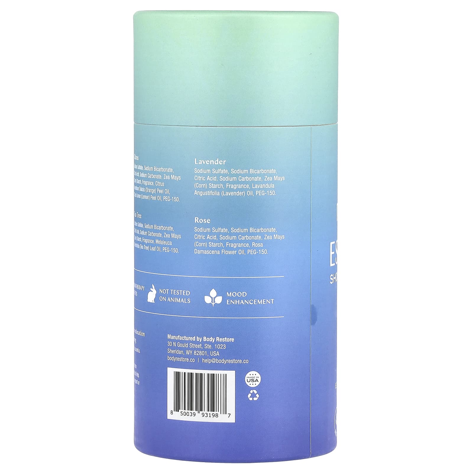 Сульфат натрия, бикарбонат натрия, лимонная кислота, карбонат натрия, кукурузный крахмал (Zea mays), отдушка, масло из листьев чайного дерева (Melaleuca alternifolia), ПЭГ-150.