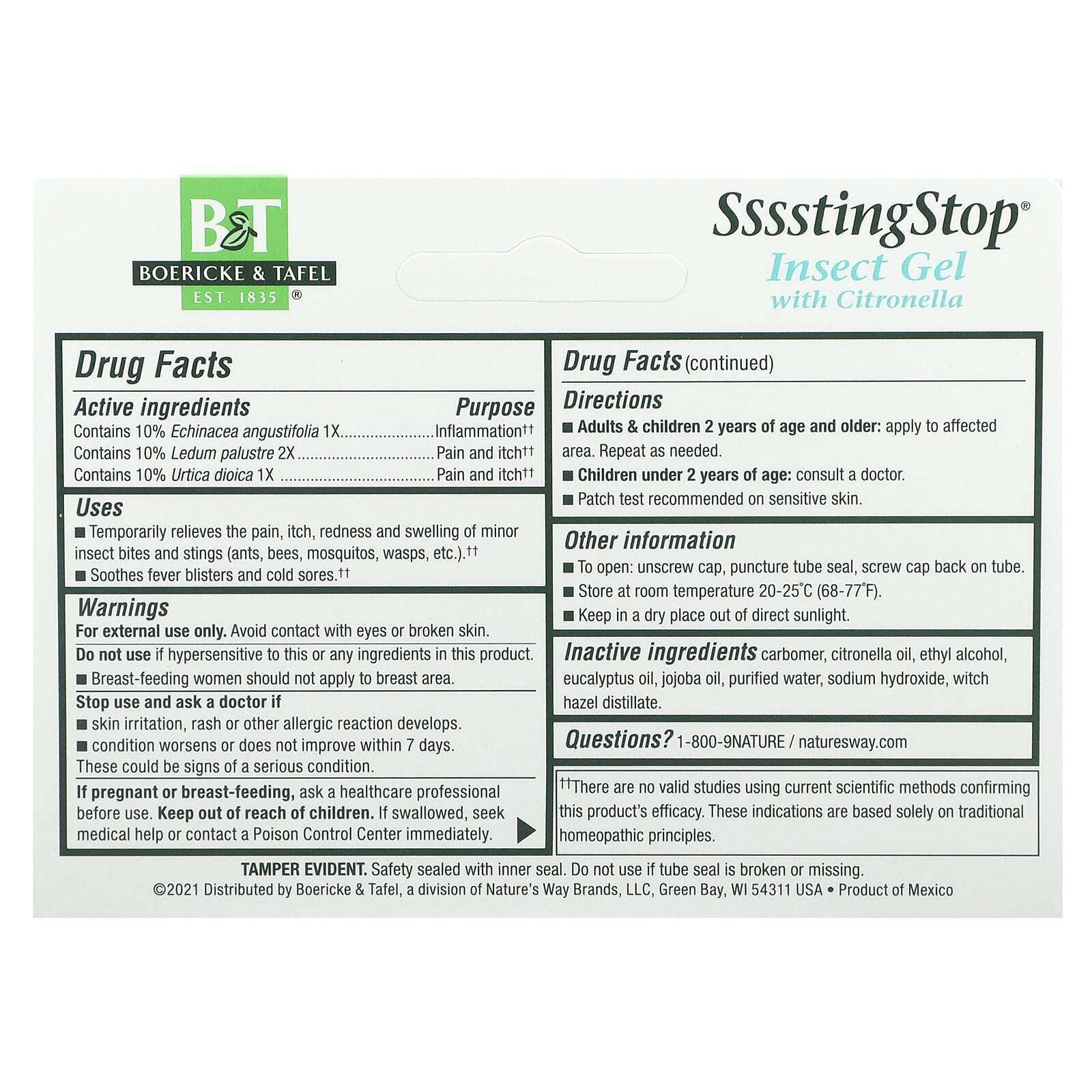 Гель SssstingStop® с цитронеллой предназначен для временного облегчения зуда, боли и покраснения в местах укусов насекомых. Он не содержит гидрокортизона, антигистаминных веществ и ДЭТА.