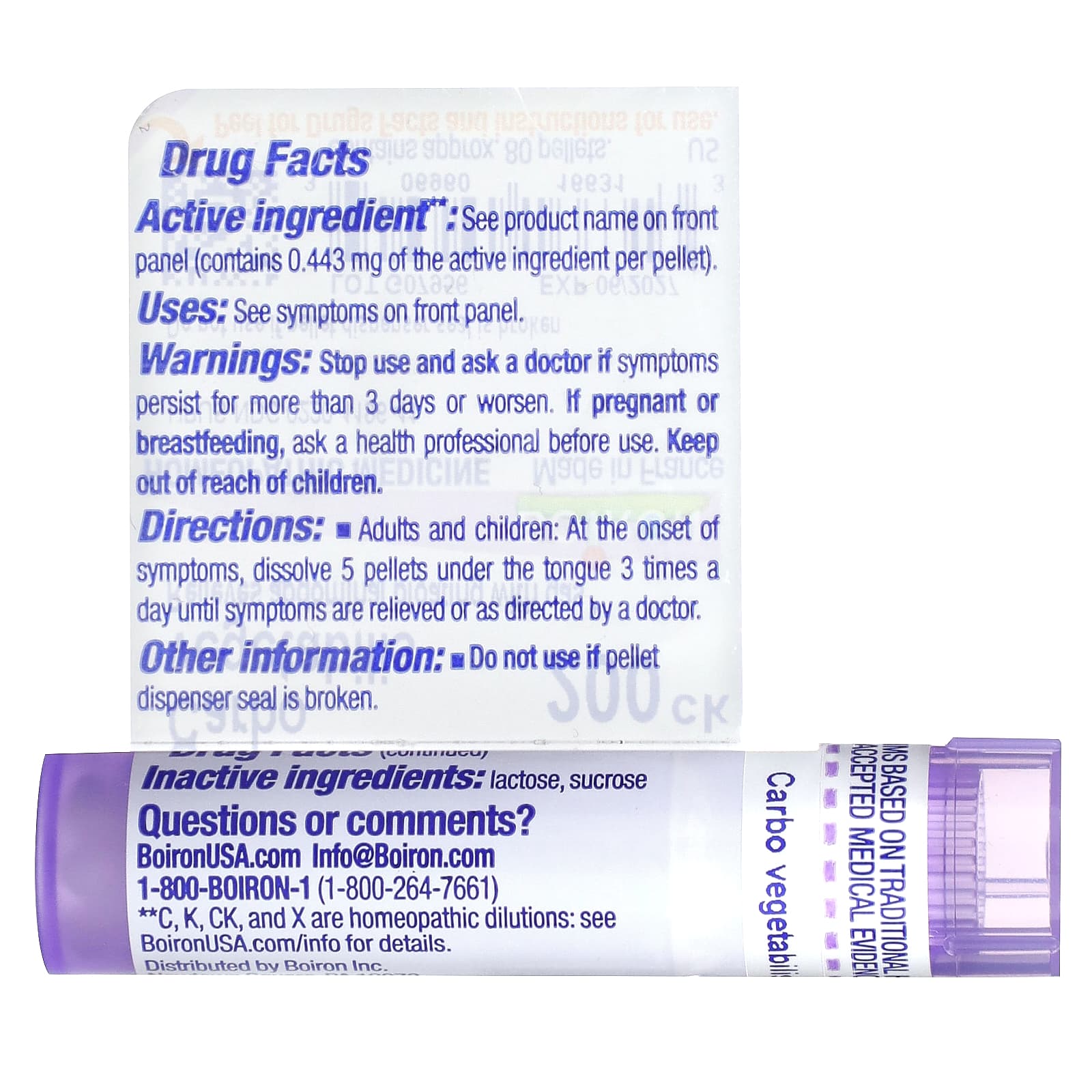 | Carbo Vegetabilis, 200CK (содержит 0,443 мг активного ингредиента на гранулу) |