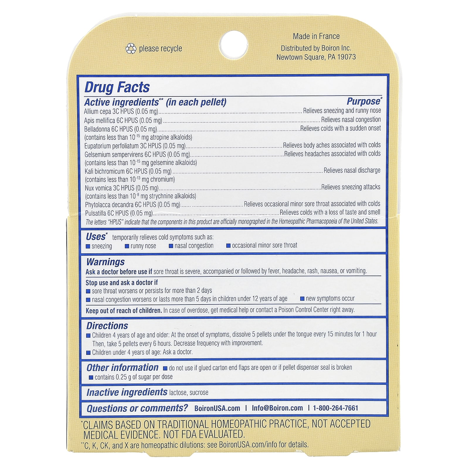 | Буквы «HPUS» указывают на то, что этот ингредиент официально включен в гомеопатическую фармакопею США. ** C, K, CK и X - гомеопатические разведения. | |
