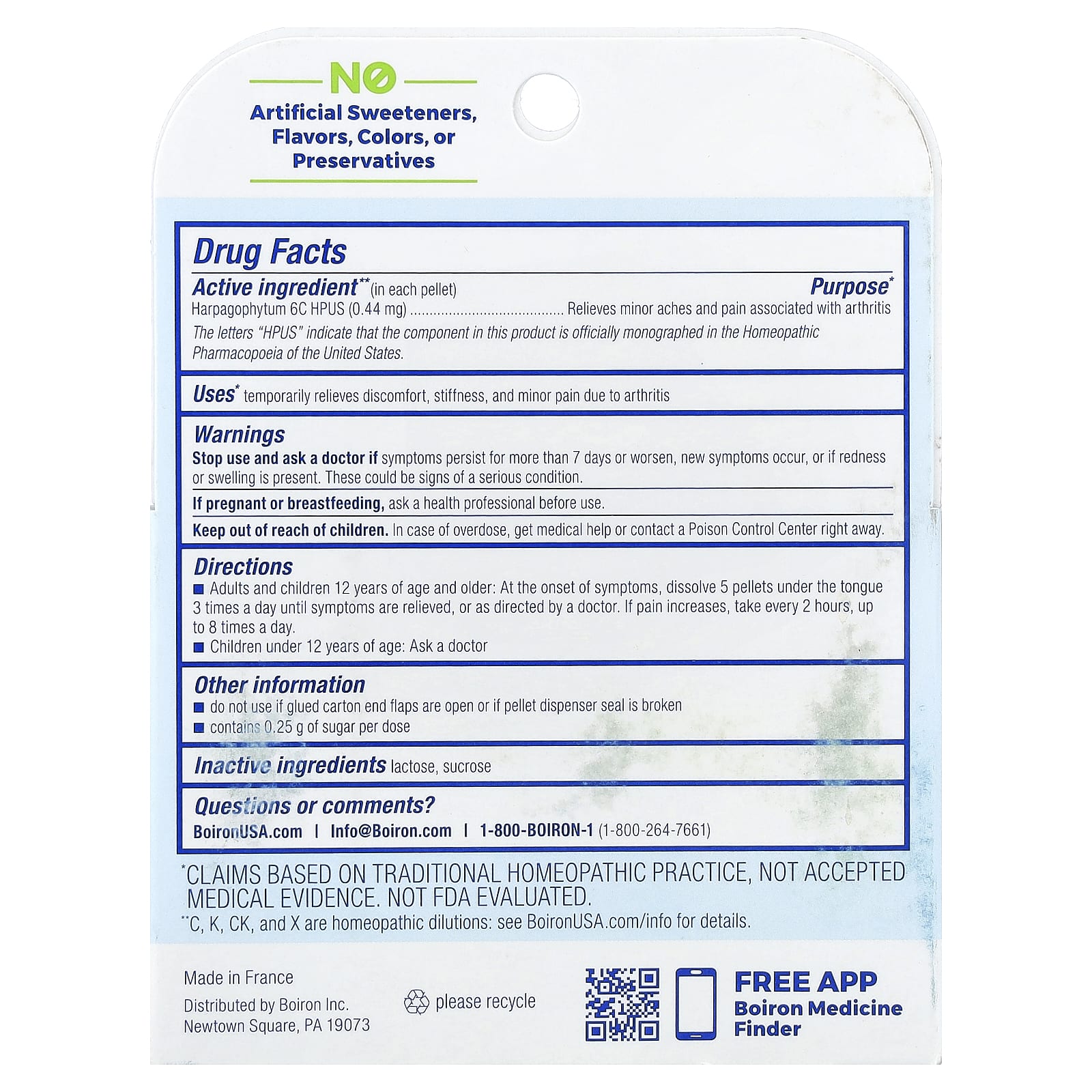 | Гарпагофитум 6C HPUS (0,44 мг) | Снимает незначительные боли, связанные с артритом |