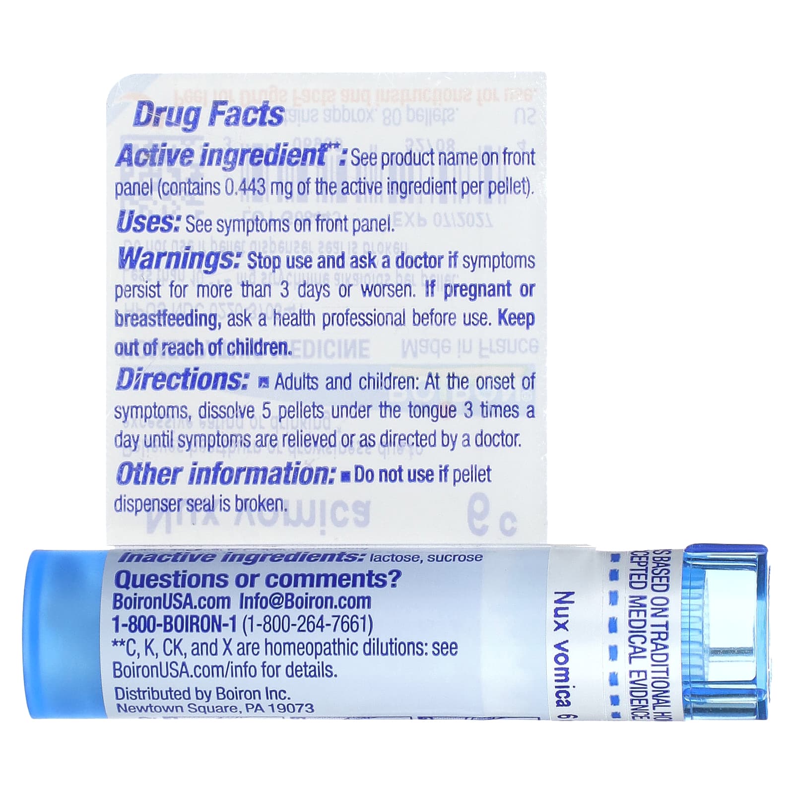 | Nux Vomica, 6C (содержит 0,443 мг активного ингредиента на гранулу) |