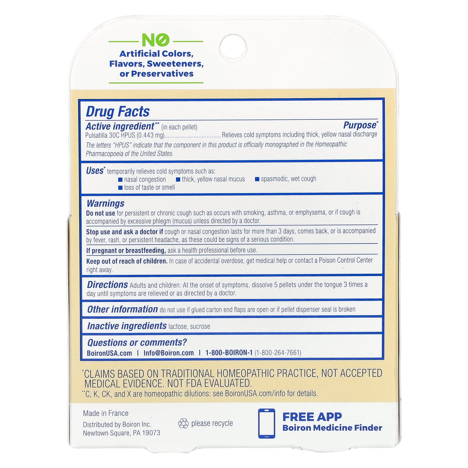 | Пульсатилла 30C HPUS (0,443 мг) | Снимает симптомы простуды, включая густые желтые выделения из носа |