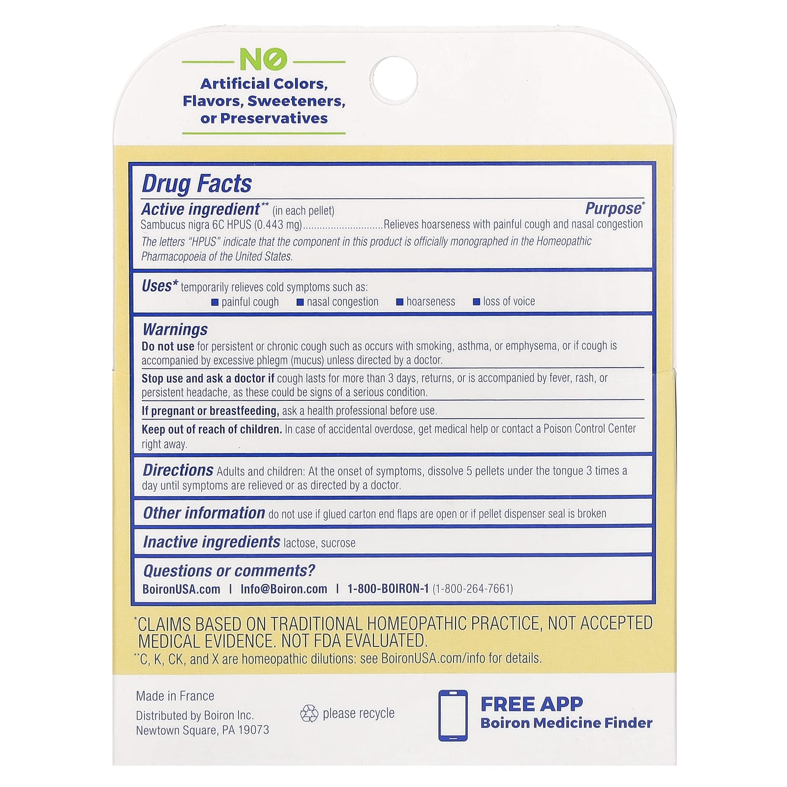 | Sambucus nigra 6C HPUS (0,443 мг) | Снимает охриплость голоса при болезненном кашле и заложенности носа |