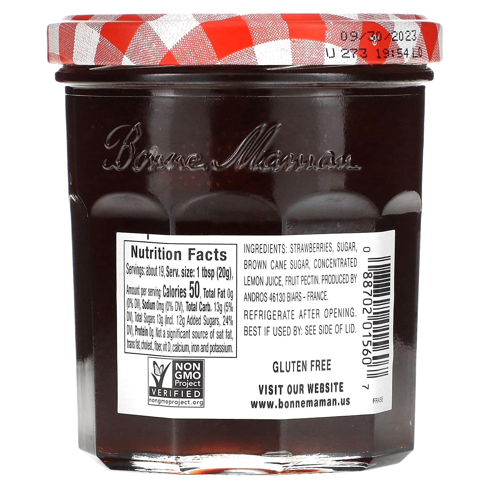 В каждой банке нашего клубничного варенья содержится множество кусочков фруктов нашей торговой марки. Сладость приготовленной клубники обеспечивает идеальную консистенцию и великолепный вкус. Как и все вкусы Bonne Maman, он изготовлен из натуральных ингредиентов, включая клубнику высочайшего качества.