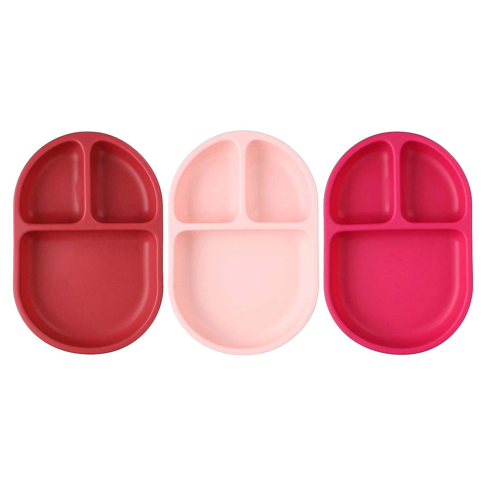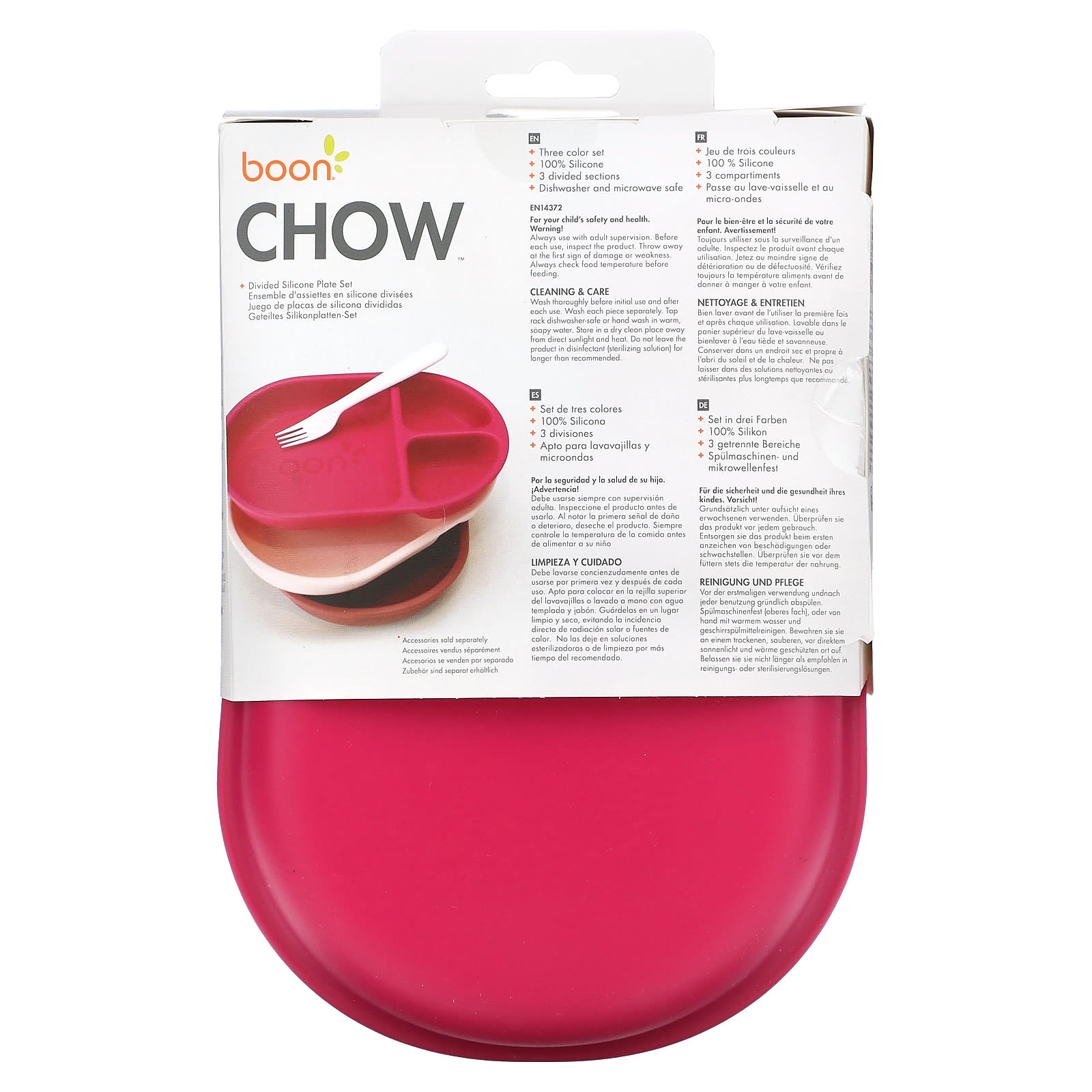 Boon, Chow, разделенный набор силиконовых тарелок, от 6 месяцев, розовый, 3 шт.
