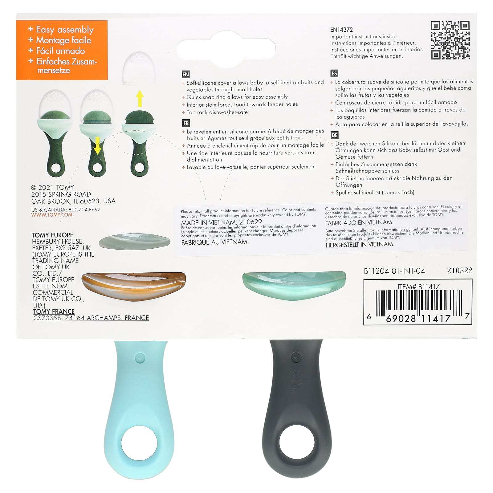 - Мягкий силиконовый чехол позволяет ребенку самостоятельно есть фрукты и овощи через небольшие отверстия