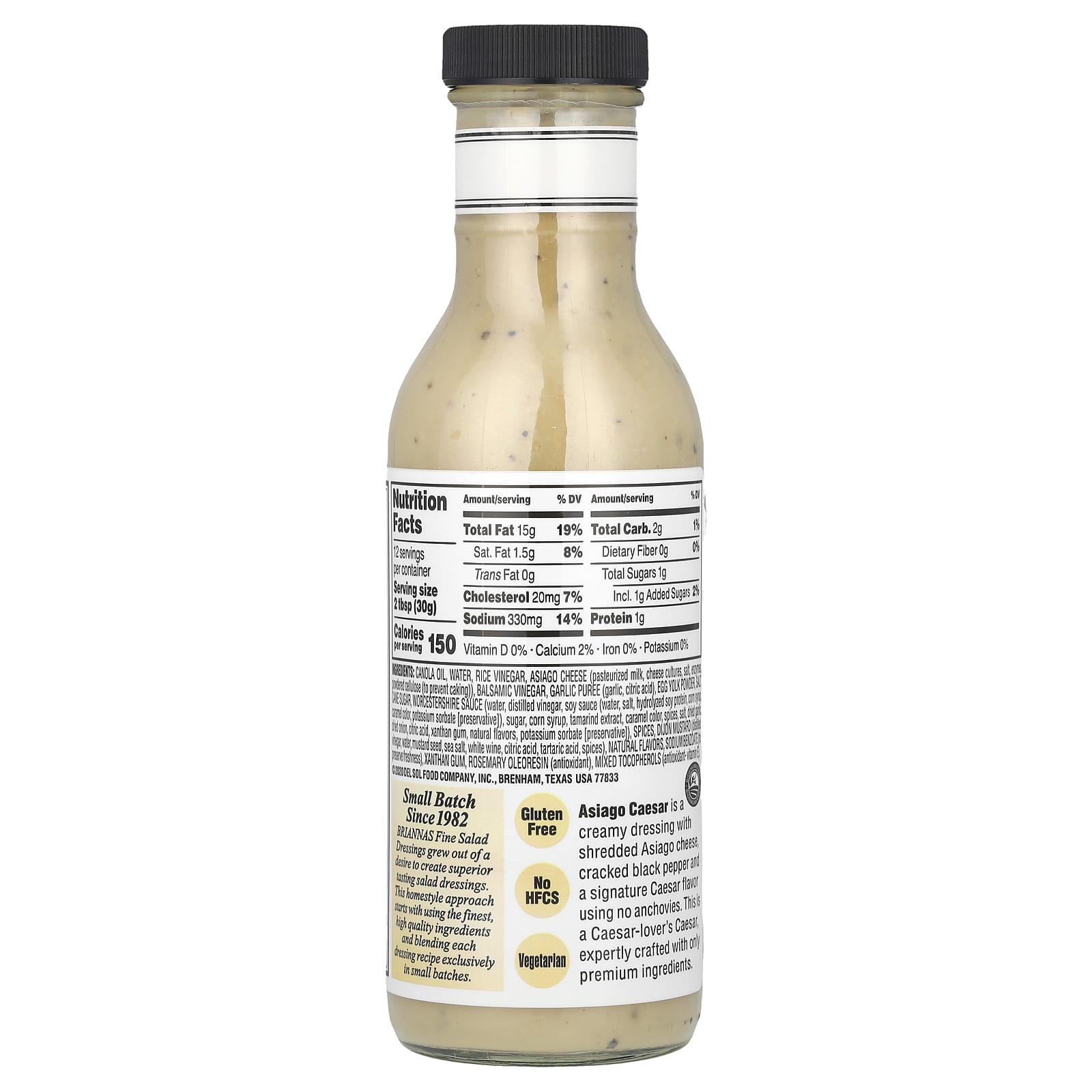 Asiago Caesar - это сливочная заправка с тертым сыром Asiago, дробленым черным перцем и фирменным вкусом «Цезарь» без анчоусов. Это Caesar-lover's Caesar, искусно созданный из ингредиентов премиального качества.