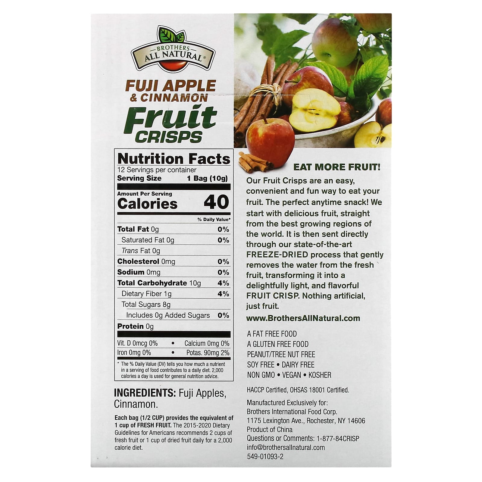 Каждый пакетик (1/2 стакана) содержит эквивалент 1 стакана свежих фруктов. В Рекомендациях по питанию для американцев на 2015–2020 гг. сказано принимать 2 стакана свежих фруктов или 1 стакан сухофруктов в день при употреблении 2000 калорий в день.
