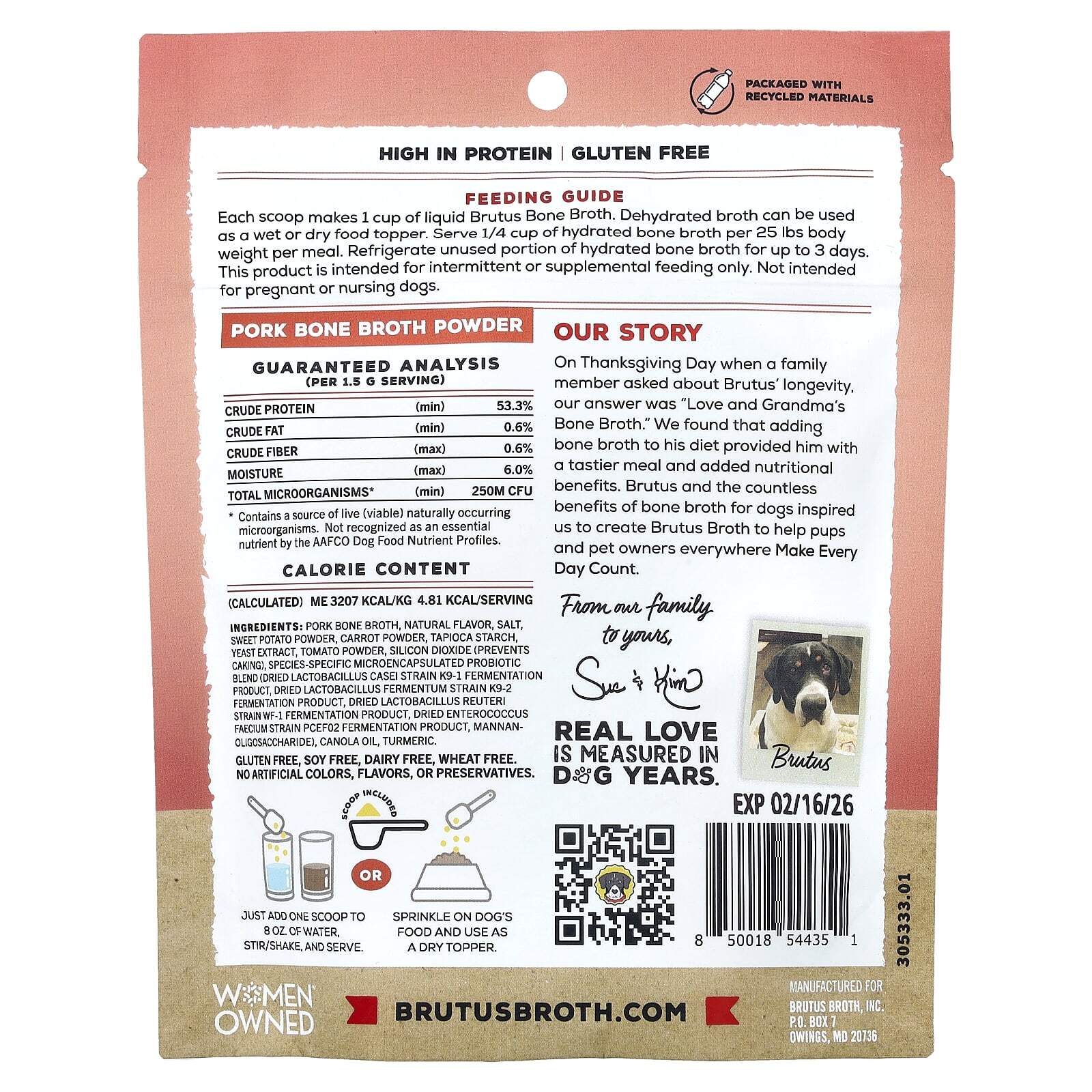 В День Благодарения член семьи спросил о долголетии Brutus, мы ответили: «С любовью и бабушкиным бульоном». Мы обнаружили, что добавление костного бульона к его рациону позволило получить более вкусную еду и дополнительные питательные свойства. Brutus и его бесчисленные преимущества для собак вдохновили нас на создание бульона Brutus, который поможет владельцам щенков и домашних животных во всем мире использовать каждый день.