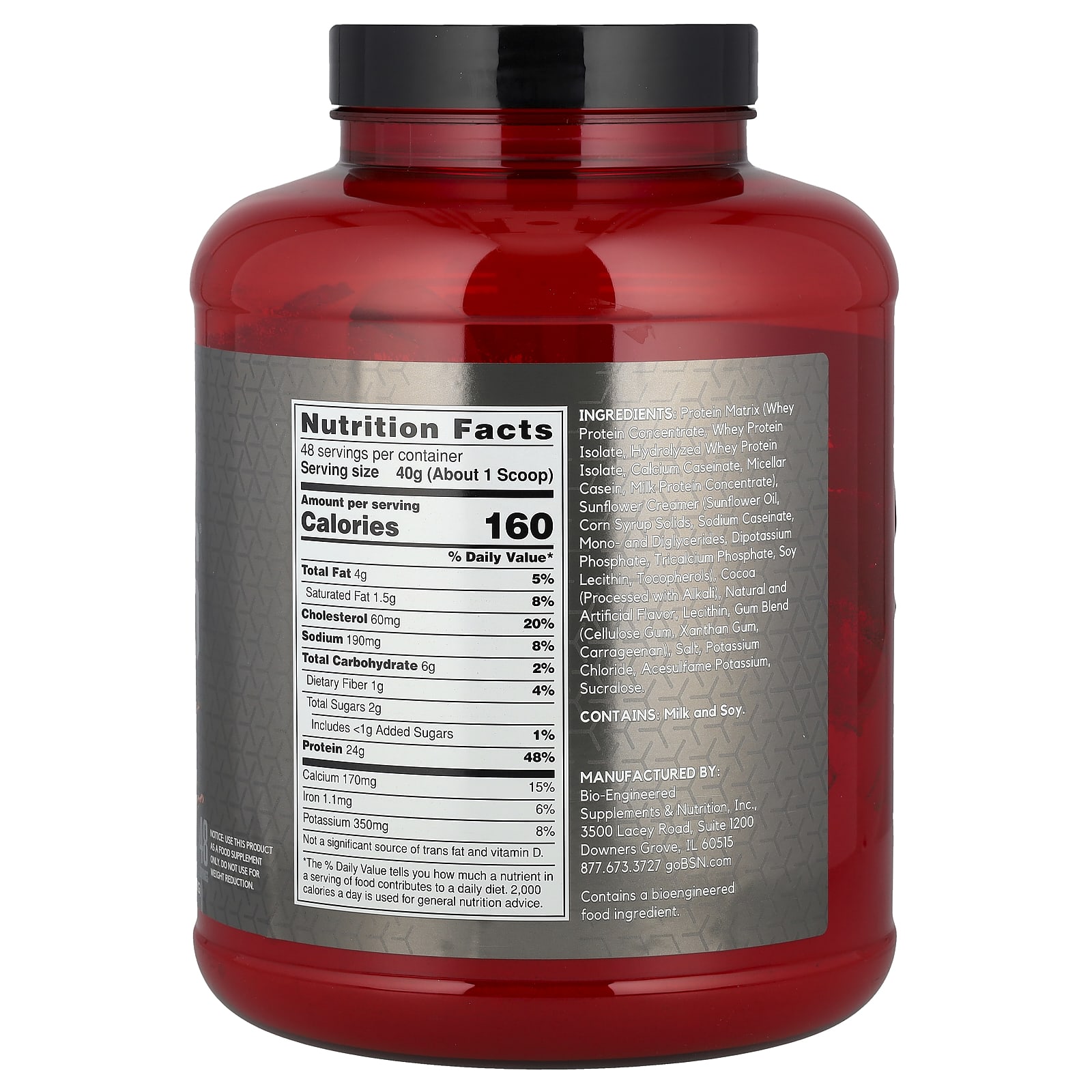 Протеиновая матрица (концентрат сывороточного протеина, изолят сывороточного протеина, гидролизованный изолят сывороточного протеина, казеинат кальция, мицеллярный казеин, концентрат молочного протеина), забеливатель из подсолнечника (подсолнечное масло, сухая кукурузная патока, казеинат натрия, моно- и диглицериды, дикалийфосфат, трикальцийфосфат, соевый лецитин, токоферолы), какао (обработанное щёлочью), натуральные и искусственные ароматизаторы, лецитин, смесь камеди (целлюлозная камедь, ксантановая камедь, каррагинан), соль, хлорид калия, ацесульфам калия, сукралоза.