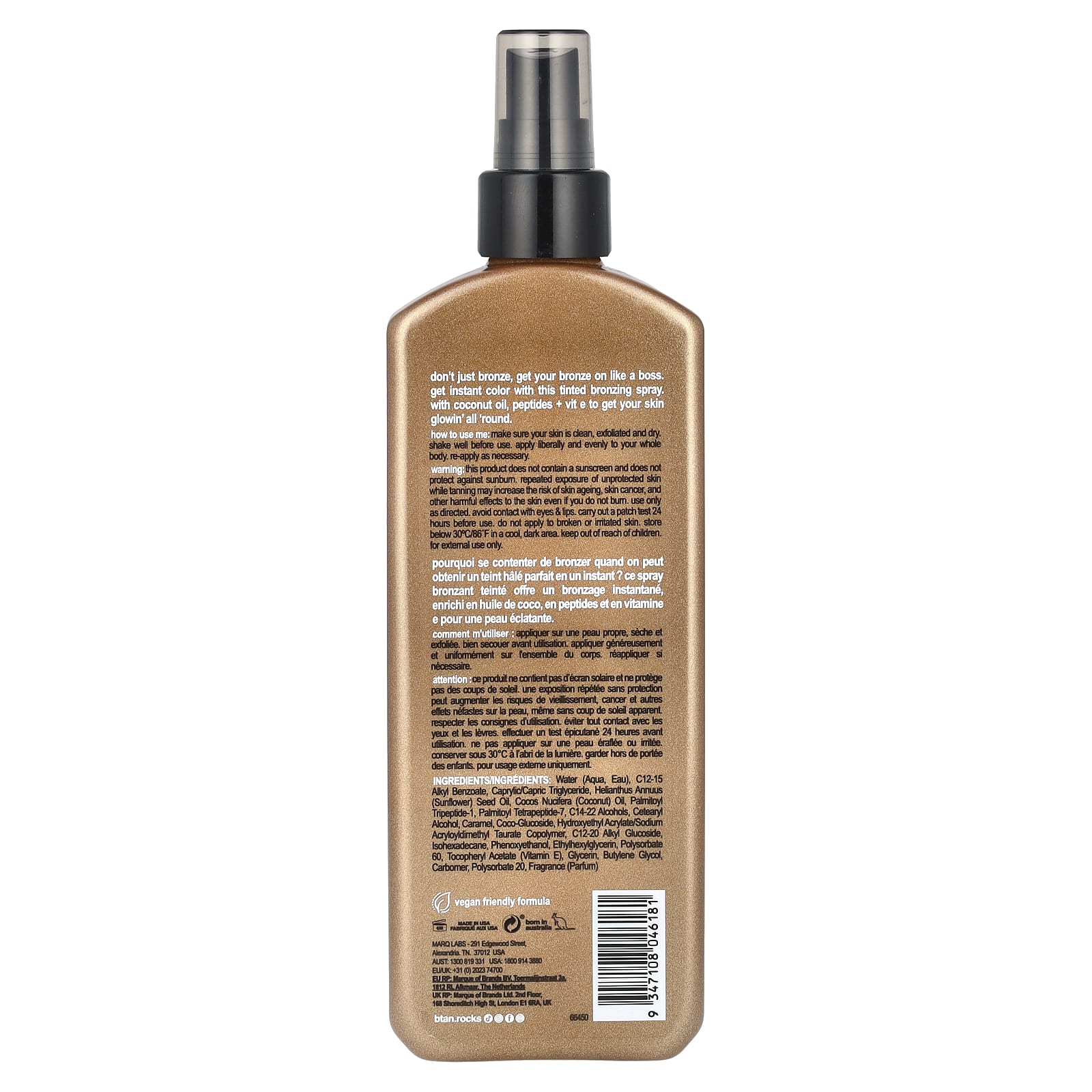 Не просто бронзовый, а бронзовый, как босс. Этот спрей с бронзовым оттенком обеспечивает мгновенный цвет. С кокосовым маслом, пептидами и витамином Е для сияния кожи.