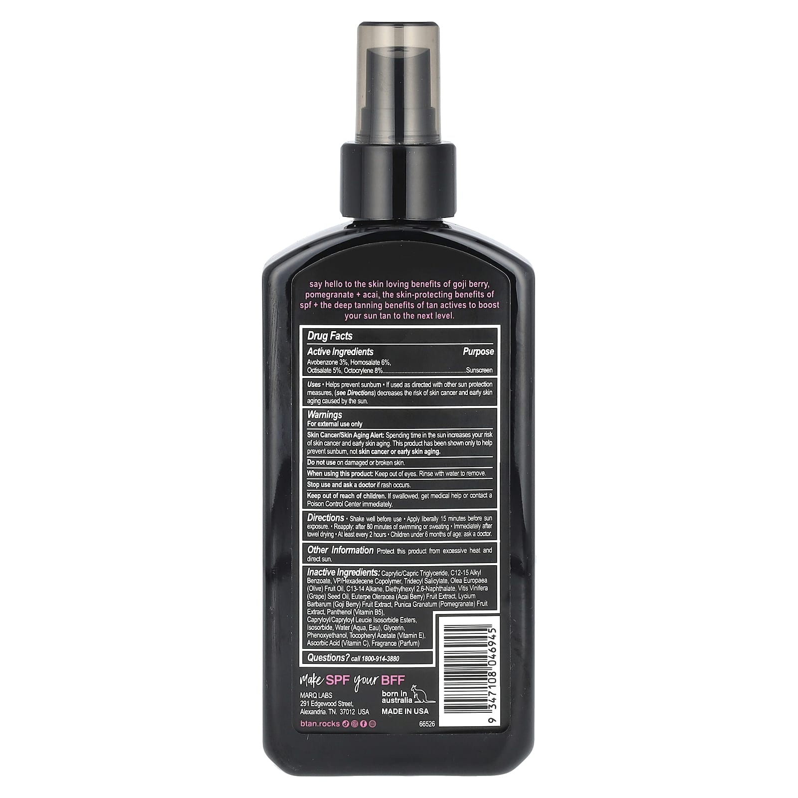 Познакомьтесь с полезными для кожи свойствами ягод годжи, граната и асаи, защитным эффектом SPF + глубоким загаром активных компонентов для загара, чтобы вывести ваш загар на новый уровень